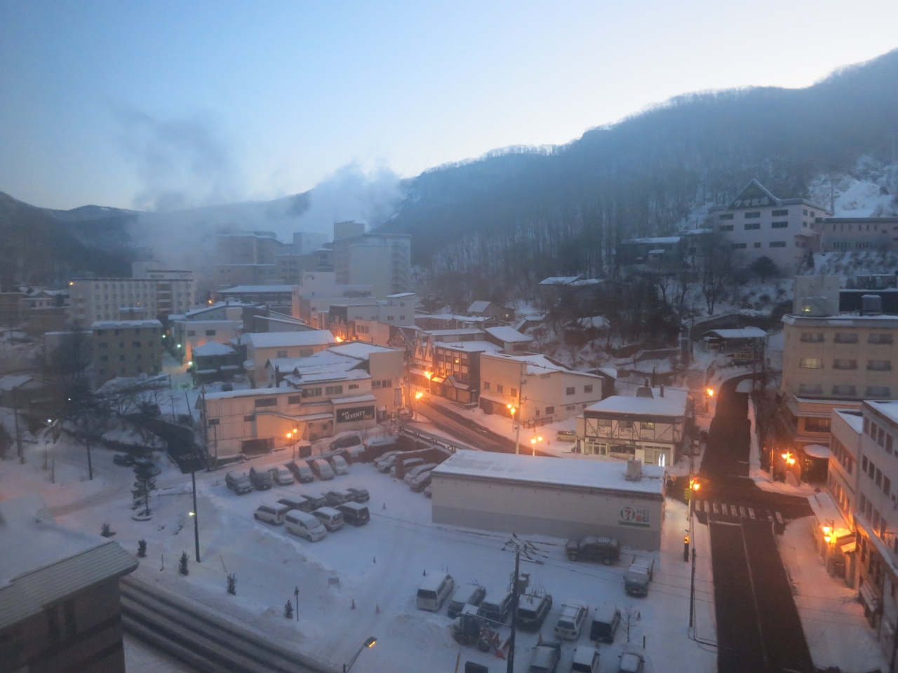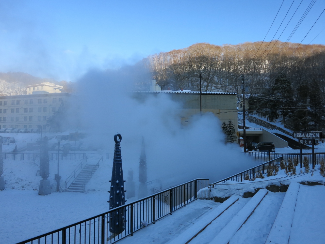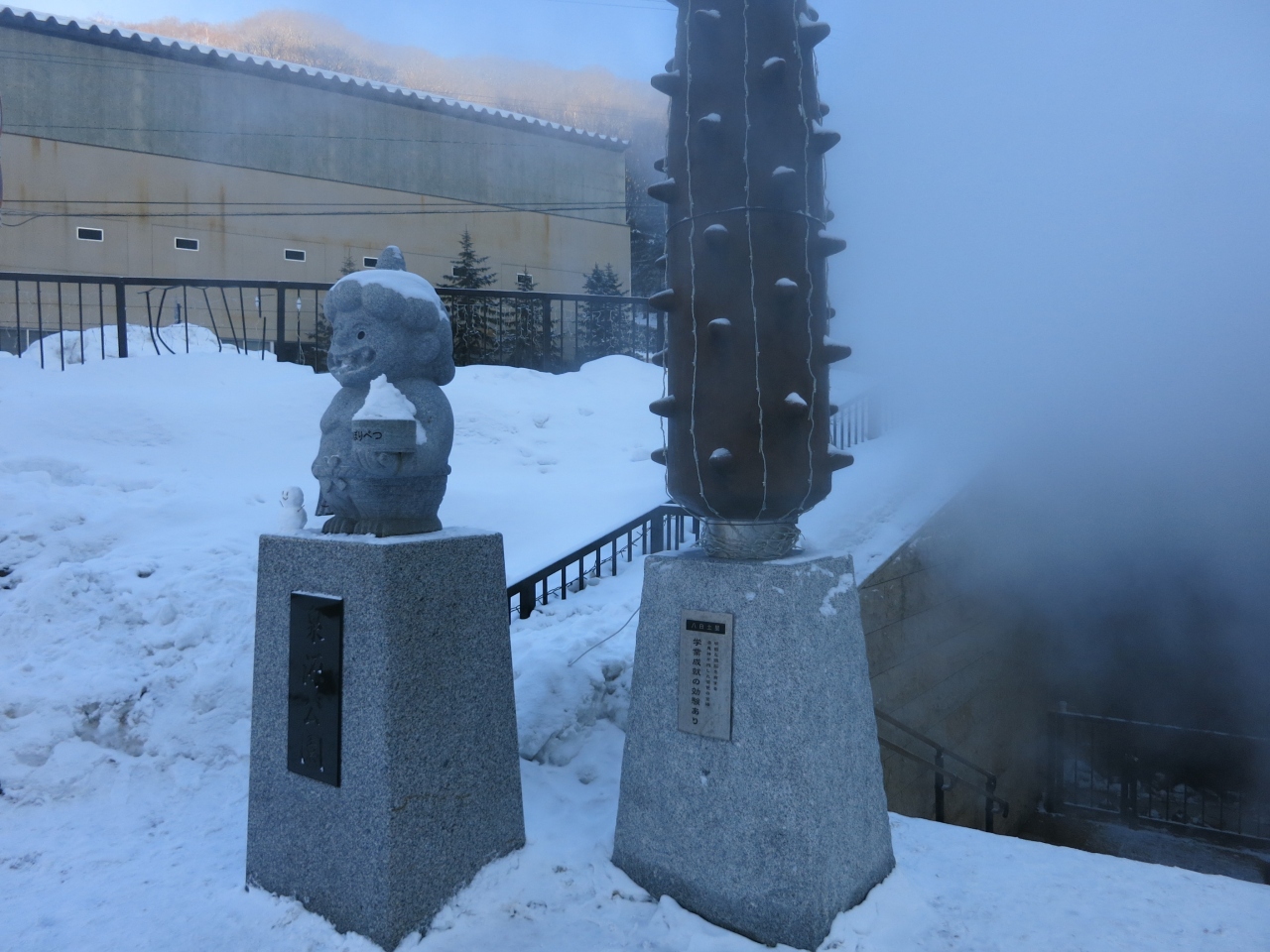 一方、B1の露天風呂は、囲われていたせいか、扉を開けた瞬間、湯気で何も見えません(眼鏡をかけていた訳ではありません)。広い浴場内はあちこちに浴槽が掘られていて、何も見えない中、ゲームのように進みます。足元は滑りやすく、結構危険です。扉を開けてすぐ、階段があったり、その横にはファミリー風呂ということで、滑り台があったりと、足で探るように進みました。入った瞬間、何も見えないので、横にそれて滑り台に行ってしまう人もしばしば見かけました。なお、気温が高い夏場は違うのかもしれません。
