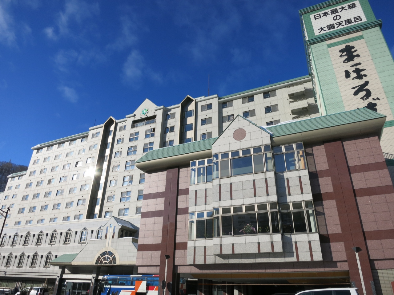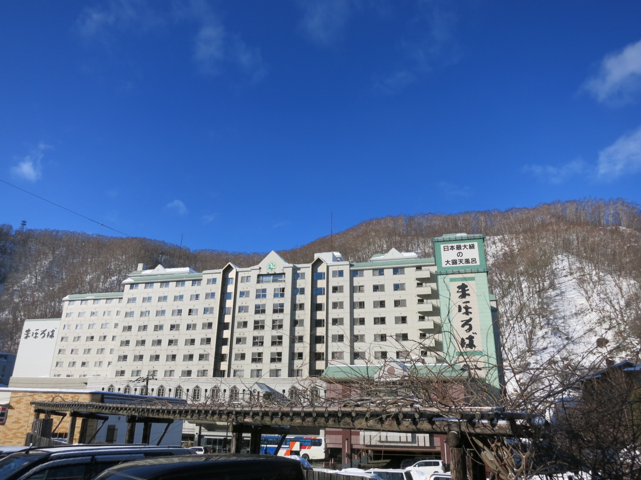 B1とB2では、内風呂は似たようなものだと思いますが、露天風呂に違いがあります。B1は目隠しで囲われたような感じですが、B2は屋根からはみ出したところでは、目の前の建物を見上げるように囲まれています。いくつもの窓があり、明かりが見える窓も。見えないような工夫がされているとの話しですが、ちょっと落ち着きません。勿論、良いこともあって、庭園のような風情があり、訪れた時は木に霧氷のような雪が積もっていて、美しかったです。