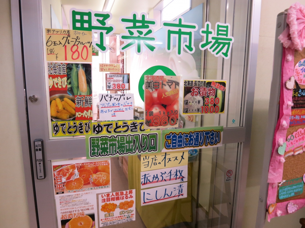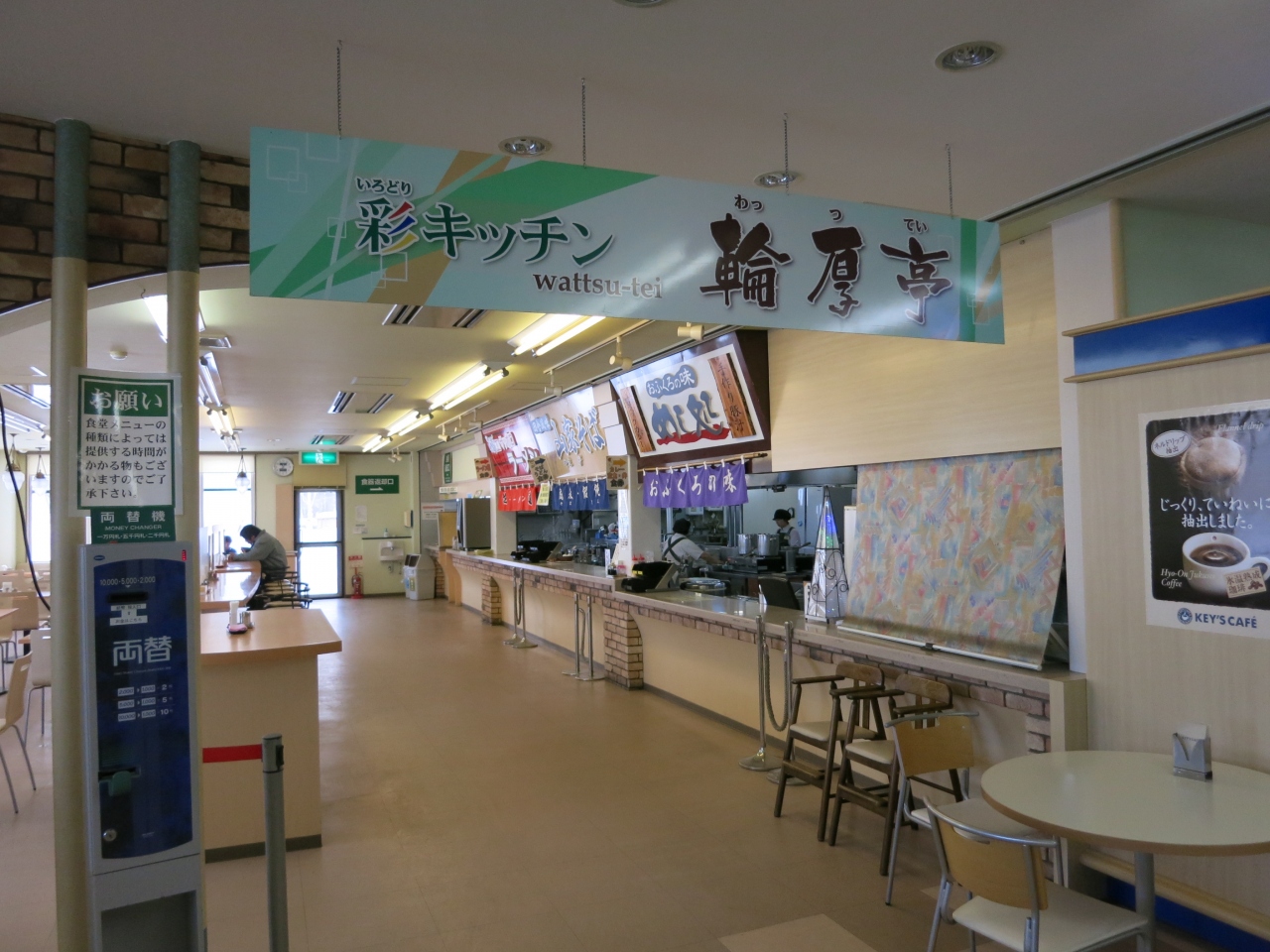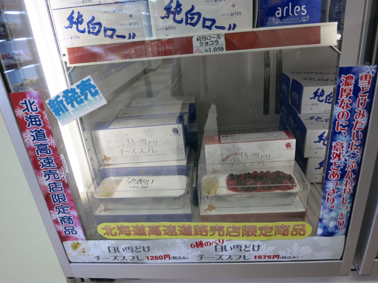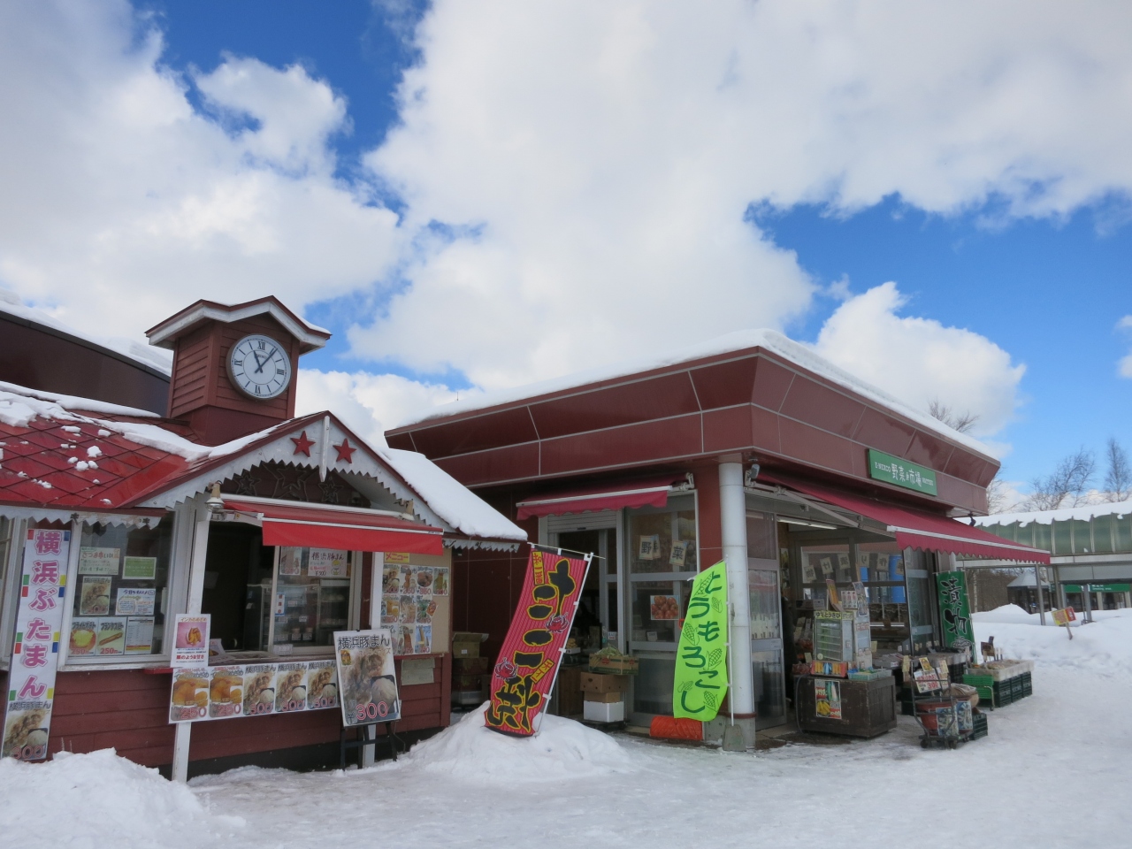 上下線共に、おみやげなどを販売する店舗、食堂とトイレがあります。店舗では地元野菜を販売するコーナーがあり、訪れた時は千歳の水耕栽培の美白トマトというのを販売していました。お土産は、苫小牧の「よいとまけ」がありましたが、他は普通のお菓子類で、ゆきだるまチョコといったチョコ類やクッキー類がありました。