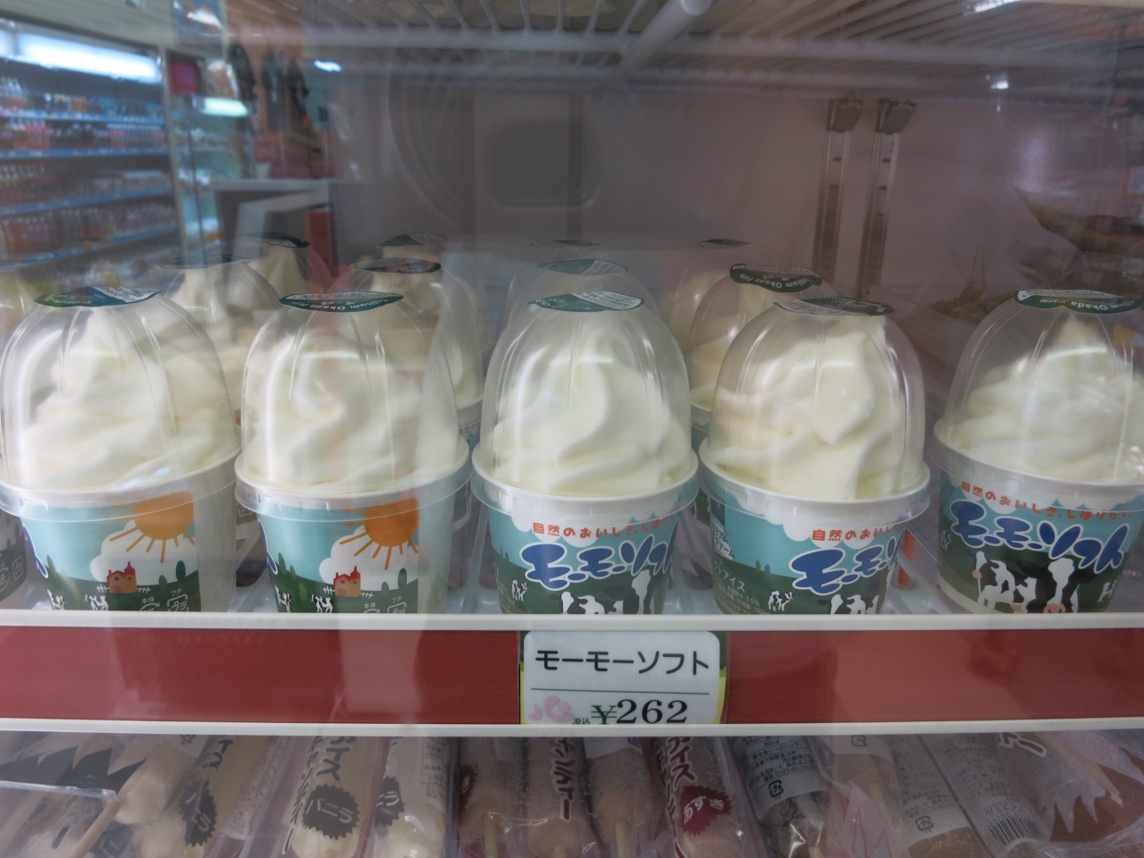 ソフトクリームもありますが、時間が無いときは、モーモーソフト(¥262円)が便利です。カップに入ったソフトクリームで、生乳の風味が豊かですが、味わいは軽くさっぱりしています。- 旅行時期