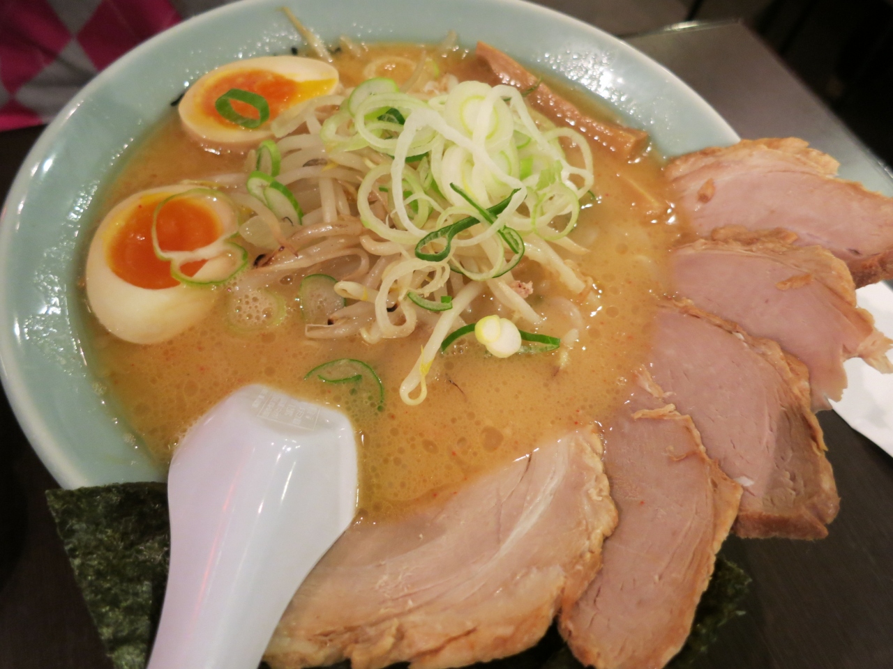 旭川ということで醤油ラーメンを…と思うかもしれませんが(札幌は味噌、函館は塩)、ここの梅光軒は、ラーメン共和国限定で「黒味噌」というのを出していました。メニューの中では、こってり(+まろやか)なのだそうです。黒ゴマが利いたスープは、確かにこってりの部類に入るかと思いました。入っている卵も味が利いていて美味しかったですが、一緒に入っていた水餃子の妙なあっさり感が気になりました。- 旅行時期
