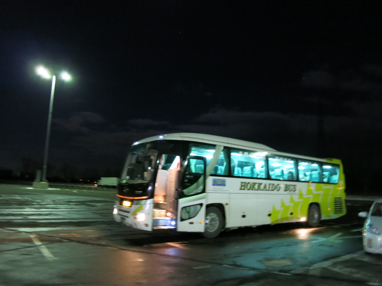 高速の休憩場所にも違いがありそうです。高速はこだて号は、よく有珠山のパーキングエリアで休憩することが多いようですが、ニュースター号に乗った時は、樽前と八雲で休憩しました。