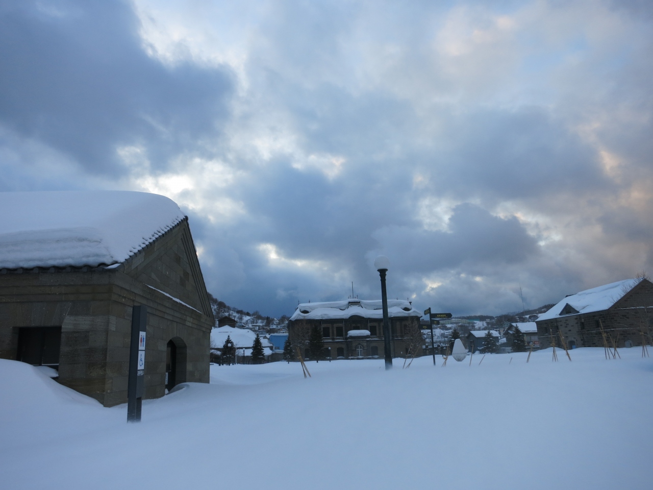 運河公園は、小樽運河の北運河沿いにあり、ガラス細工などの観光土産やスィーツの店やカフェ、寿司屋もある運河南側のエリアと違って、観光客も少ないです。更に旧日本郵船株式会社小樽支店の建物は、2013年9月から2014年3月まで工事のため入館できず、北の方にある小樽市総合博物館も、屋外車両や手宮洞窟保存館が冬期の間は公開されていません。
