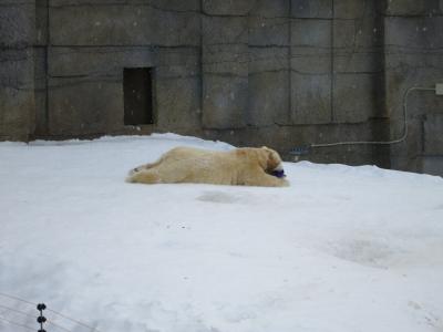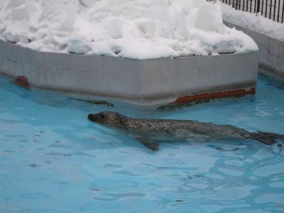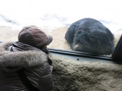 冬で雪が積もっていて、園内の一部のカフェなどは閉まっていましたが、ホッキョクグマやオオカミなどは雪の中でも活発に動き回っていました。水槽の中ではアザラシも元気にのびのびと泳ぎ回っていて、冬でも見所いっぱいです。ただ、屋外に長い時間いると、こちらの体が冷えてしまいます。温かい室内から座って眺められる施設も多かったです。訪れた時は、混んではいましたが、少し待てば窓際の椅子で座って眺めることもできました。