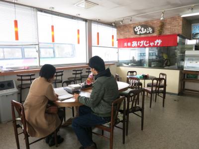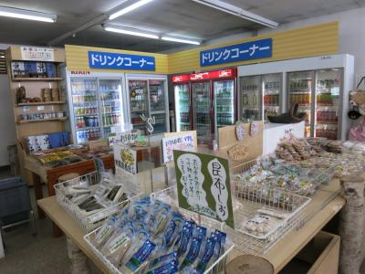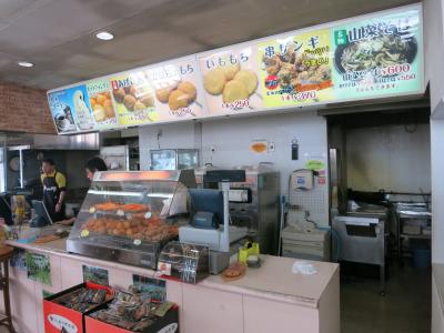 店舗には、あげいも、あげじゃがなどを売るカウンターがあり、おみやげや飲料も並んでいます。椅子とテーブルがいくつかカウンターの前にあったのは、道の駅に比べて便利だとは思いますが、入口が喫煙所の休憩スペースになっているようで、とてもタバコ臭かったのがいただけません。
