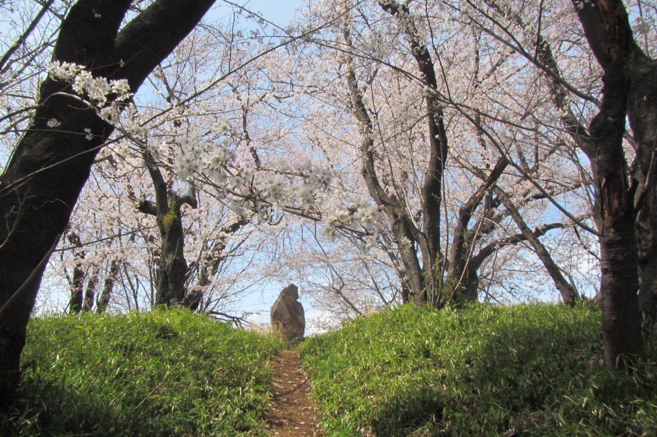 3月末は当地の桜の季節で、公園には桜はありませんが、その大神塚の方に桜が植わっていて、とてもきれいです。