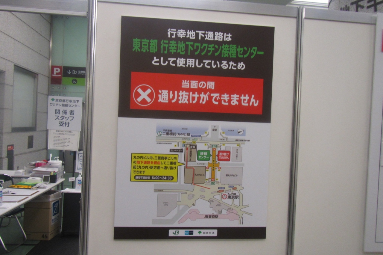 地下通路が通っていて、特に天気の悪い時など便利なのですが、2022年3月現在、ワクチン接種会場になっていて、通行止めとなっています。