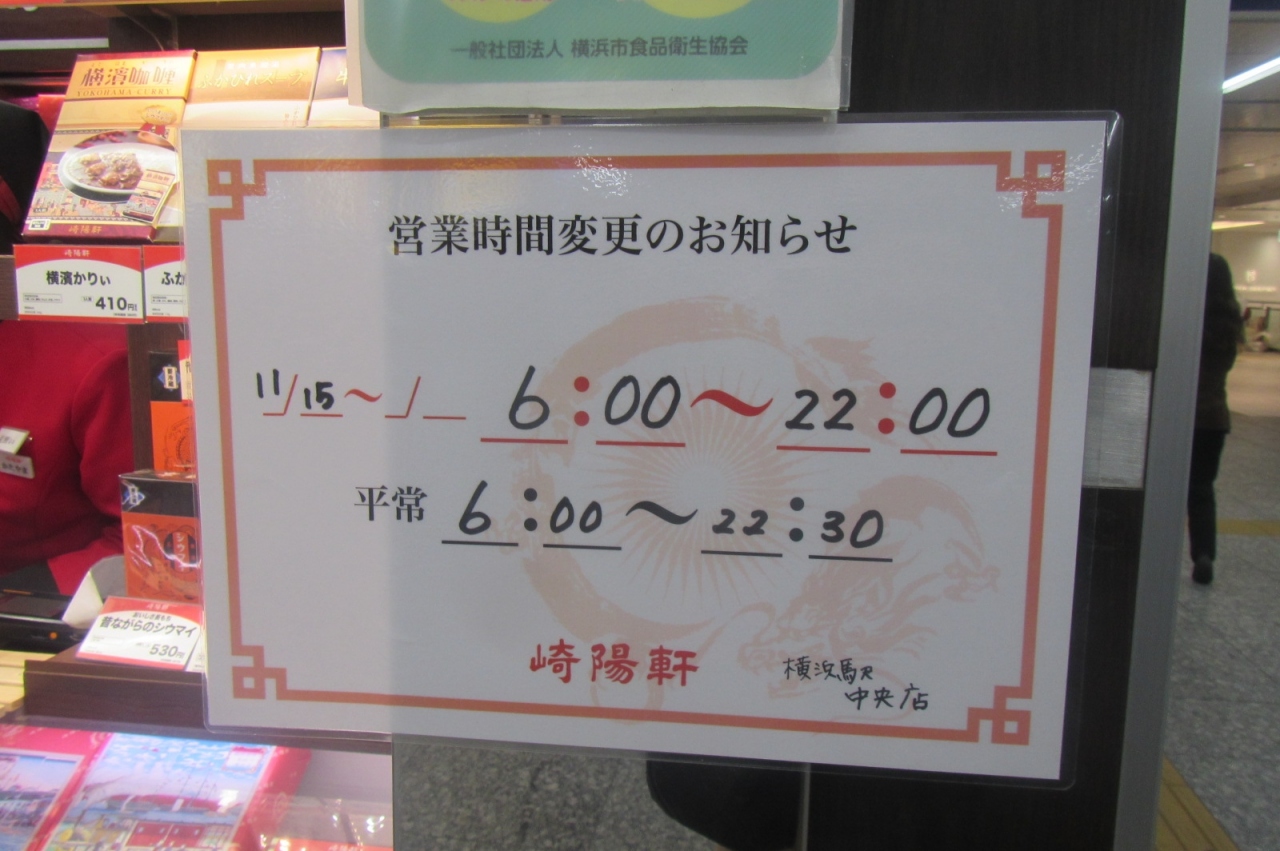 横浜駅構内だけでもキヨスクのように各所にある崎陽軒の売り場ですが、こちらの店舗は改札外の中央コンコースの真ん中にあります。