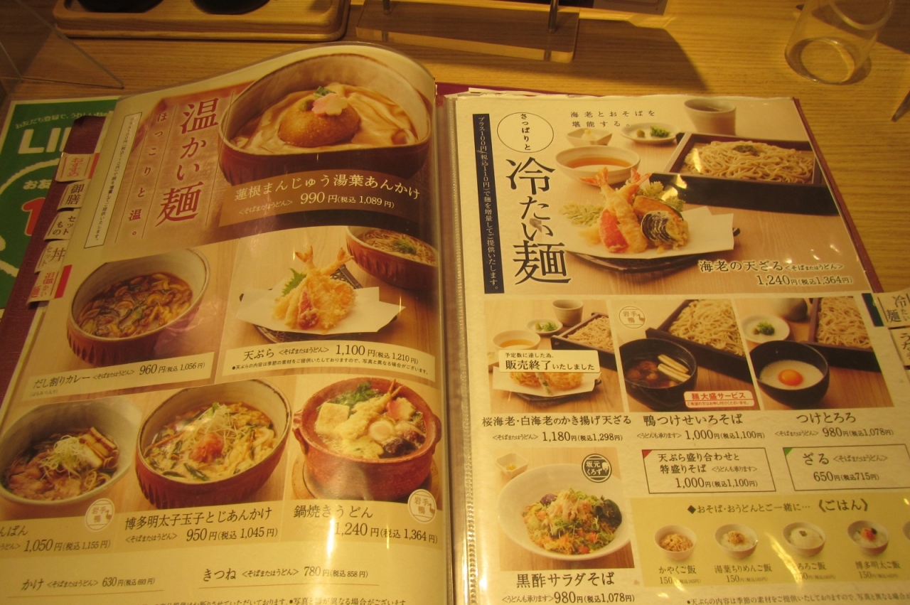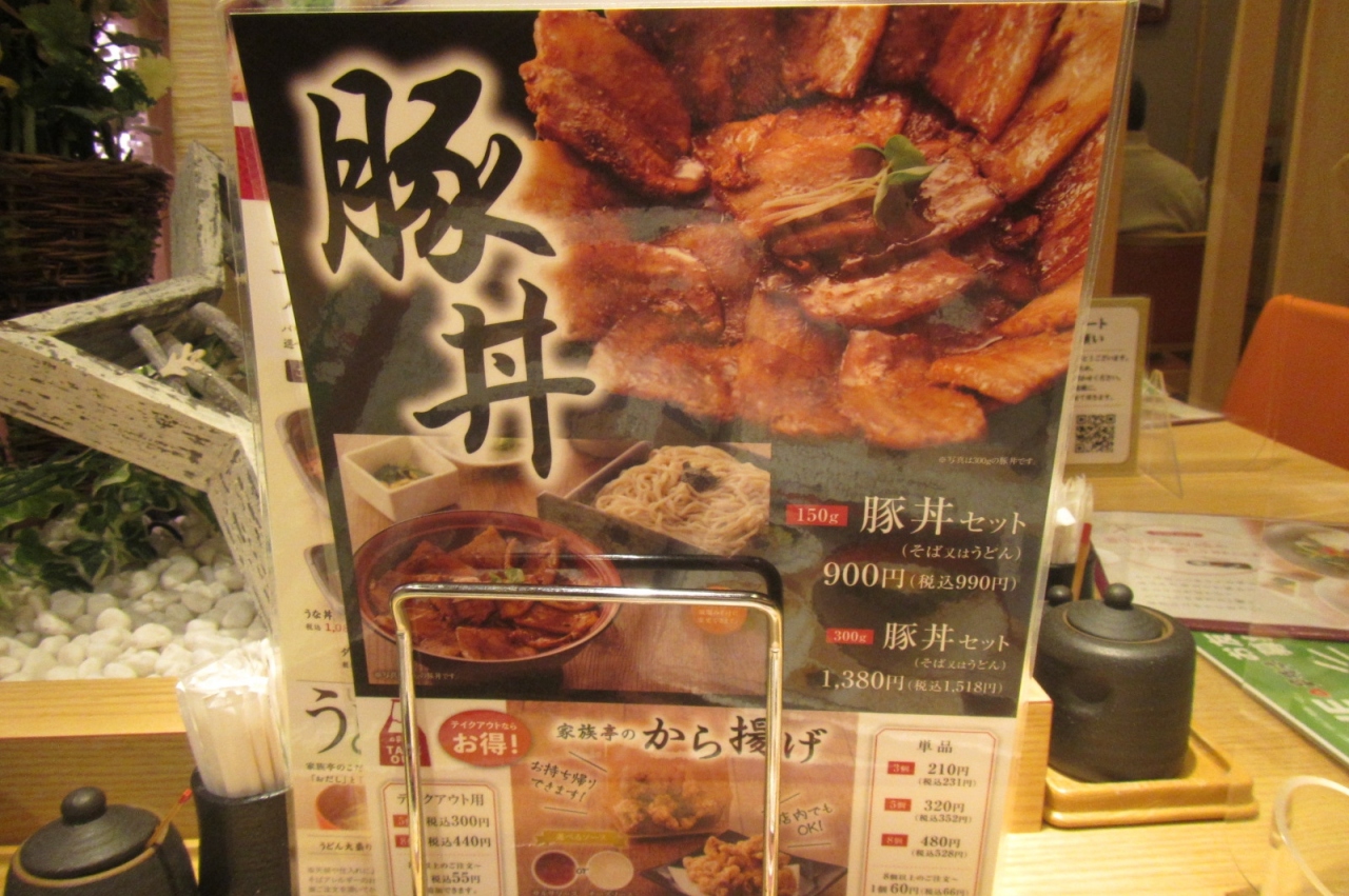 そば・うどんのメニューは天ぷらや卵とじなどそれらをアレンジしたものから、そのセットメニュー、豚丼など、さまざまありました。- 旅行時期