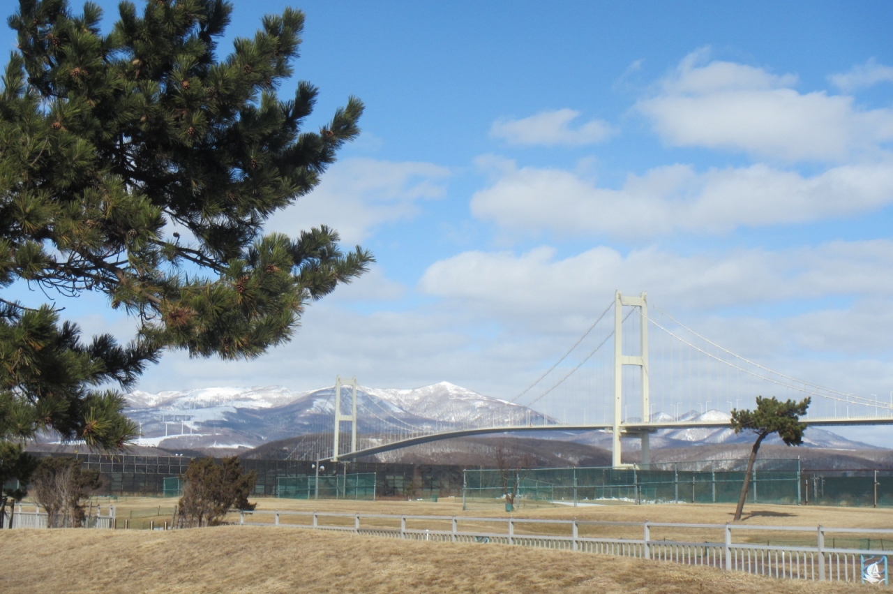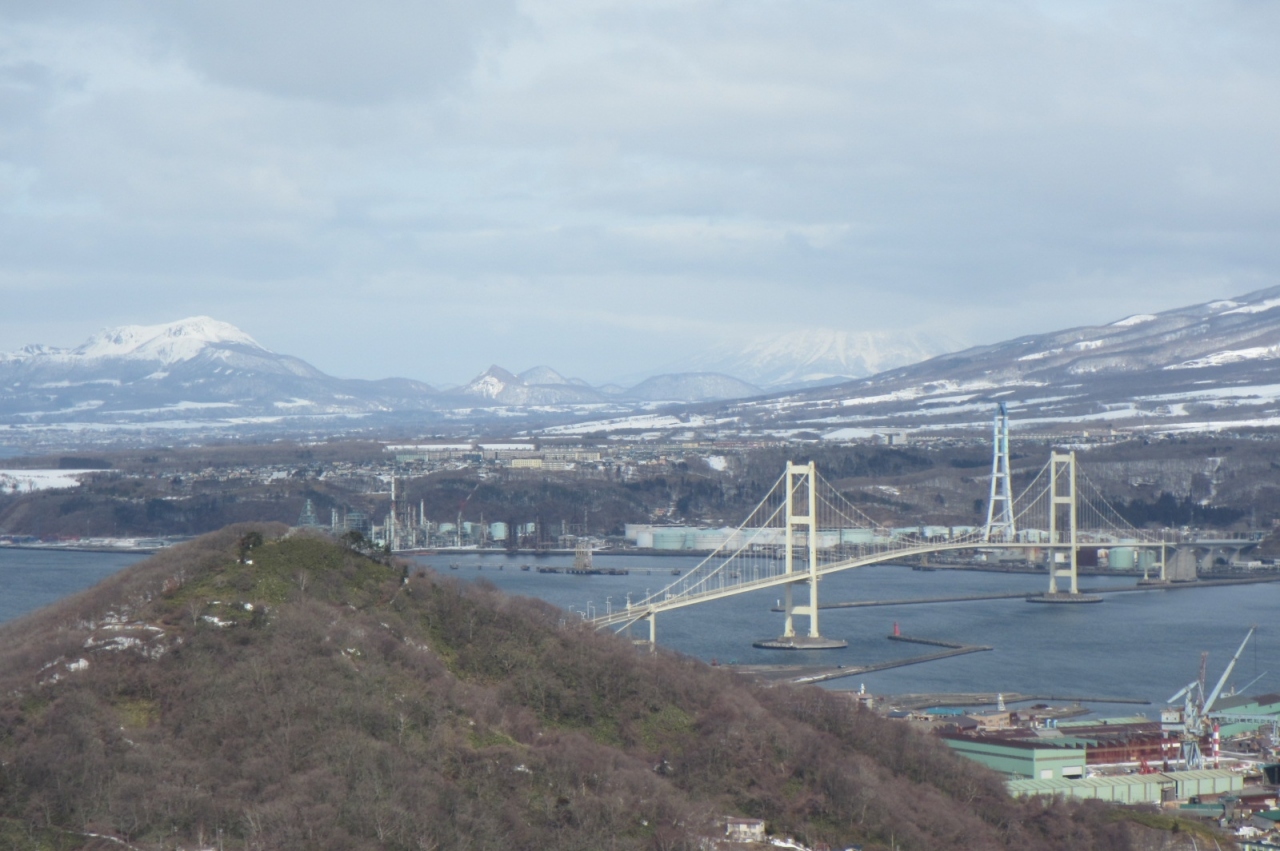 橋に比較的近いところでは、室蘭の道の駅、みたら室蘭の2階展望室や1階フードコート、また、雰囲気の良いところでは、宮越屋珈琲ムテキロウなどがおススメです。