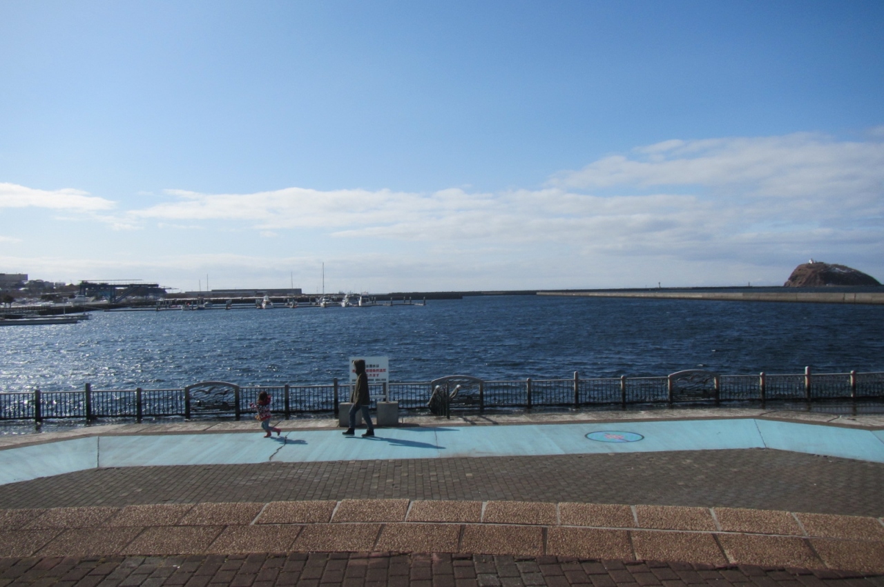 波打ち際が護岸で覆われ、海に少し入ったところに手摺りような境界があってそれ以上、海の方に行けないようになっているので、子どもたちが浅瀬に入って水遊び(海水ですが)ができ、特に夏の暑い時期には良いと思います。