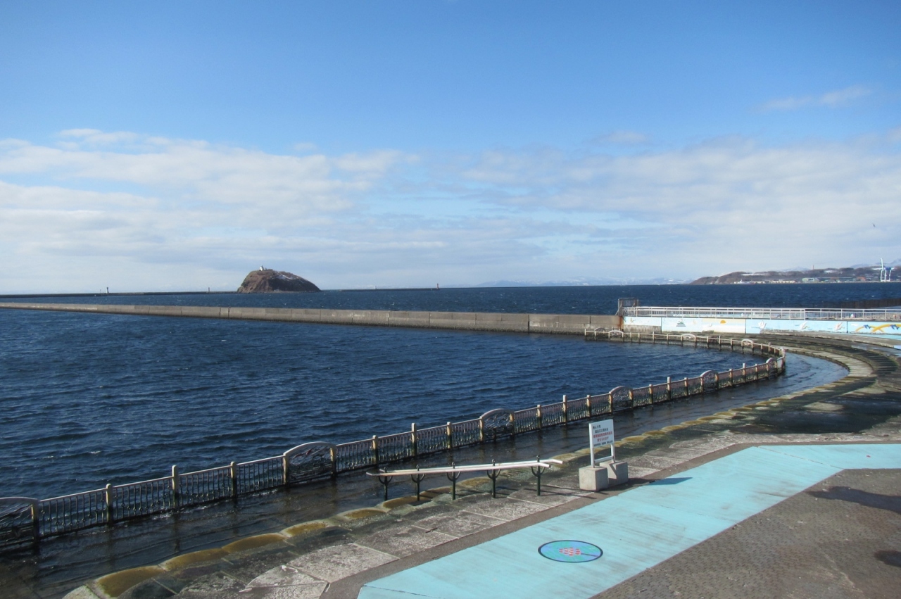 室蘭の道の駅みたら室蘭の横の波打ち際に整備された公園で、波打ち際が遊水公園のような護岸の渚となっています。