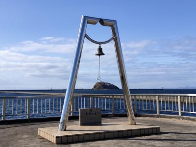 絵鞆岬では、大黒島より近くにあるえびす島なら浅瀬を渡ったり、泳いだりしていけそうな距離にありますが、皆、考えることは同じなのか、遊泳禁止の看板が立っていました。- 旅行時期