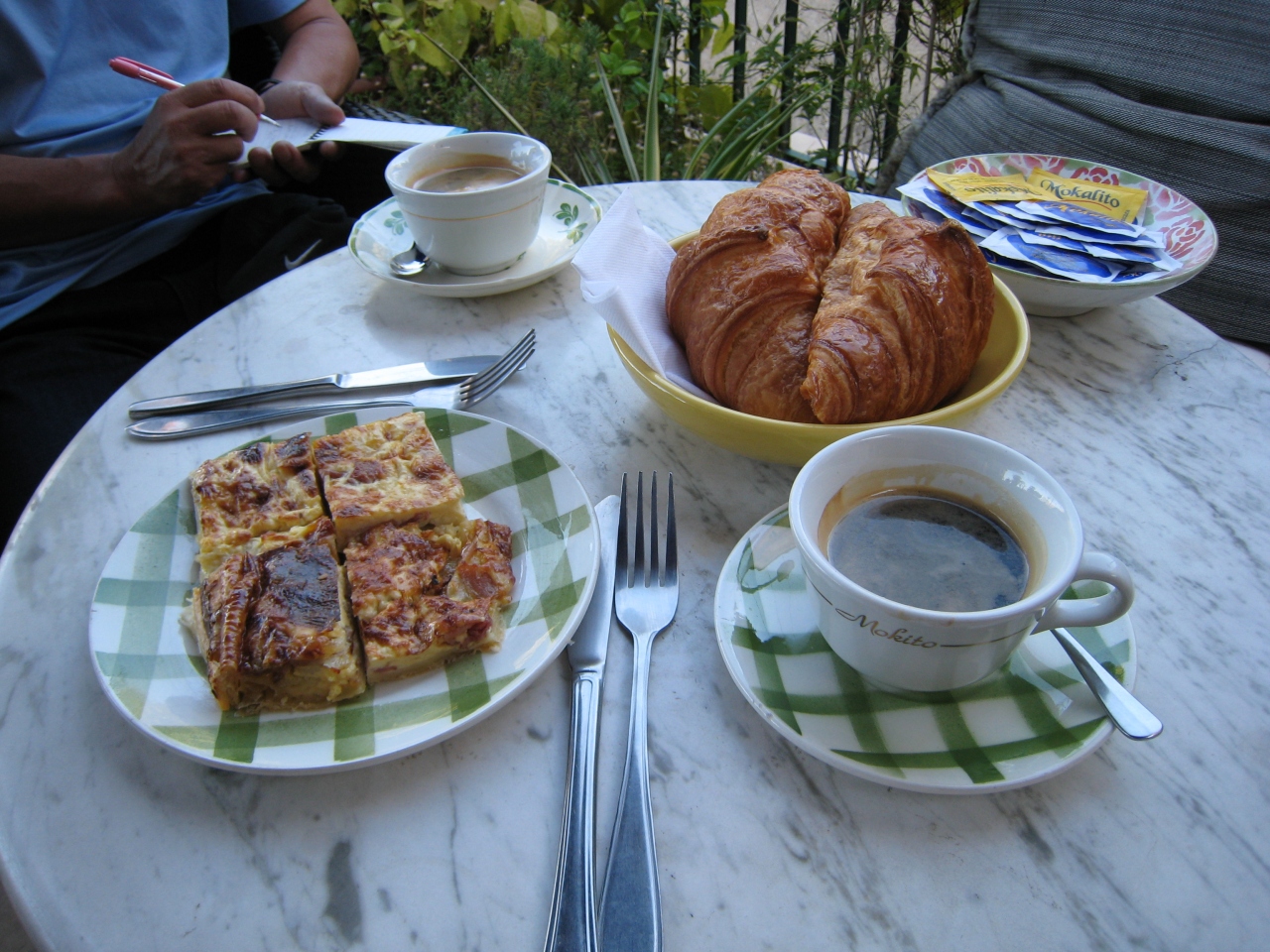 モナコが見える広場の横にある小さなカフェ。外も中も地元の人ばかり。英語も通じます。クロアッサン、キッシュ、コーヒーそれぞれ二人分で7.7ユーロでした。味もよかったです。