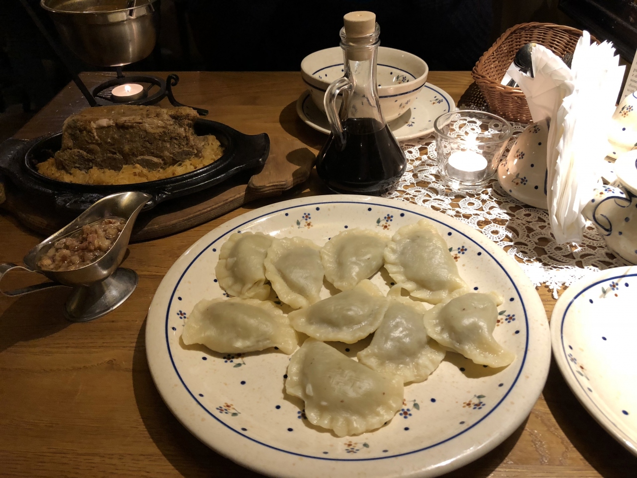 旧市街を歩いていると何軒か見かけました。内装はおしゃれで、少し暗く、よい雰囲気でした。店員さんの制服も可愛いうえに、接客も丁寧でした。注文時は「英語が話せるスタッフを呼んできます」と別のスタッフが対応したりしてくれました。ピエロギの種類が多くて悩んでいるとおすすめを教えてくれました。メニューも多かったので、もっと食べたかったです。