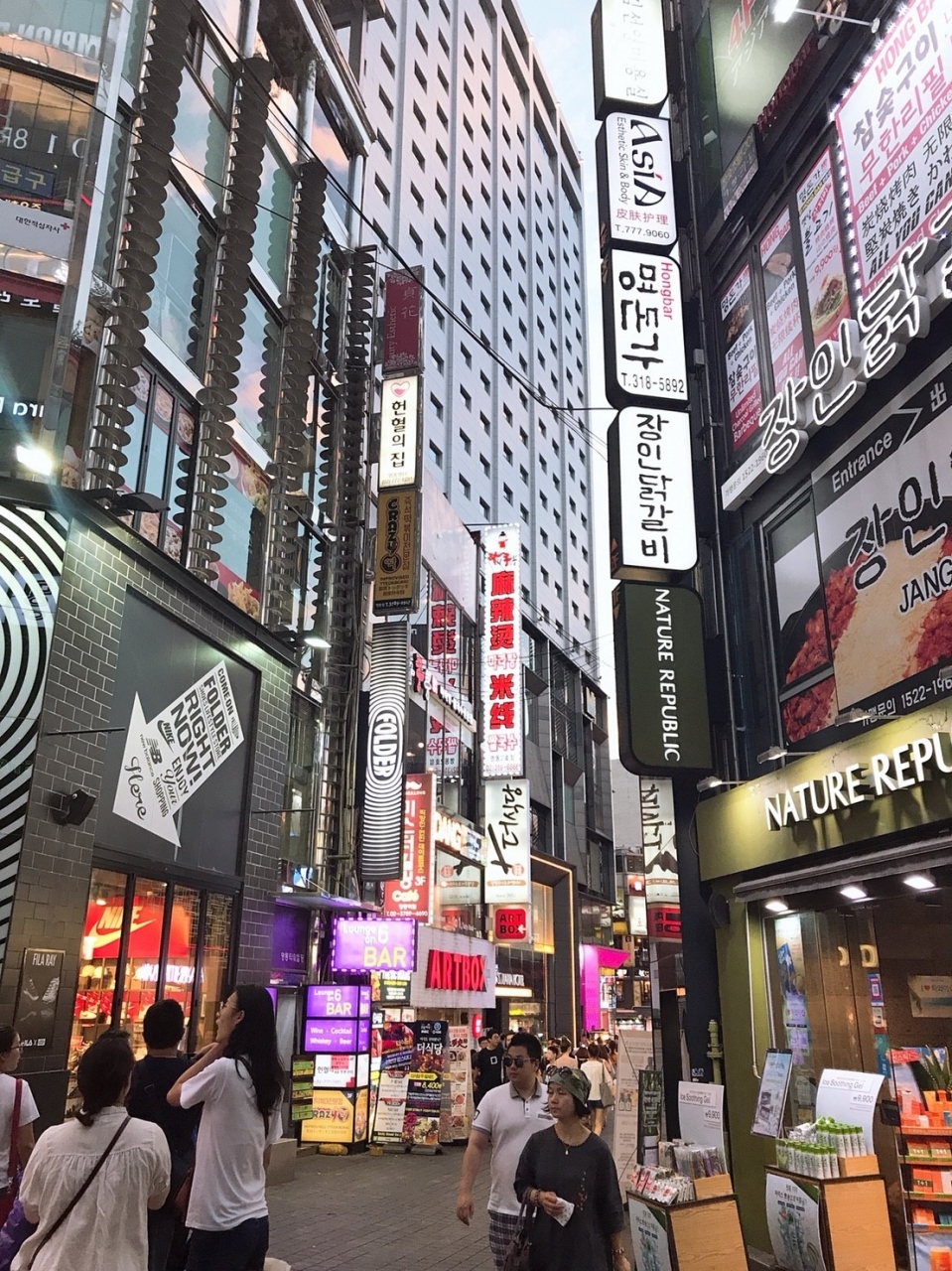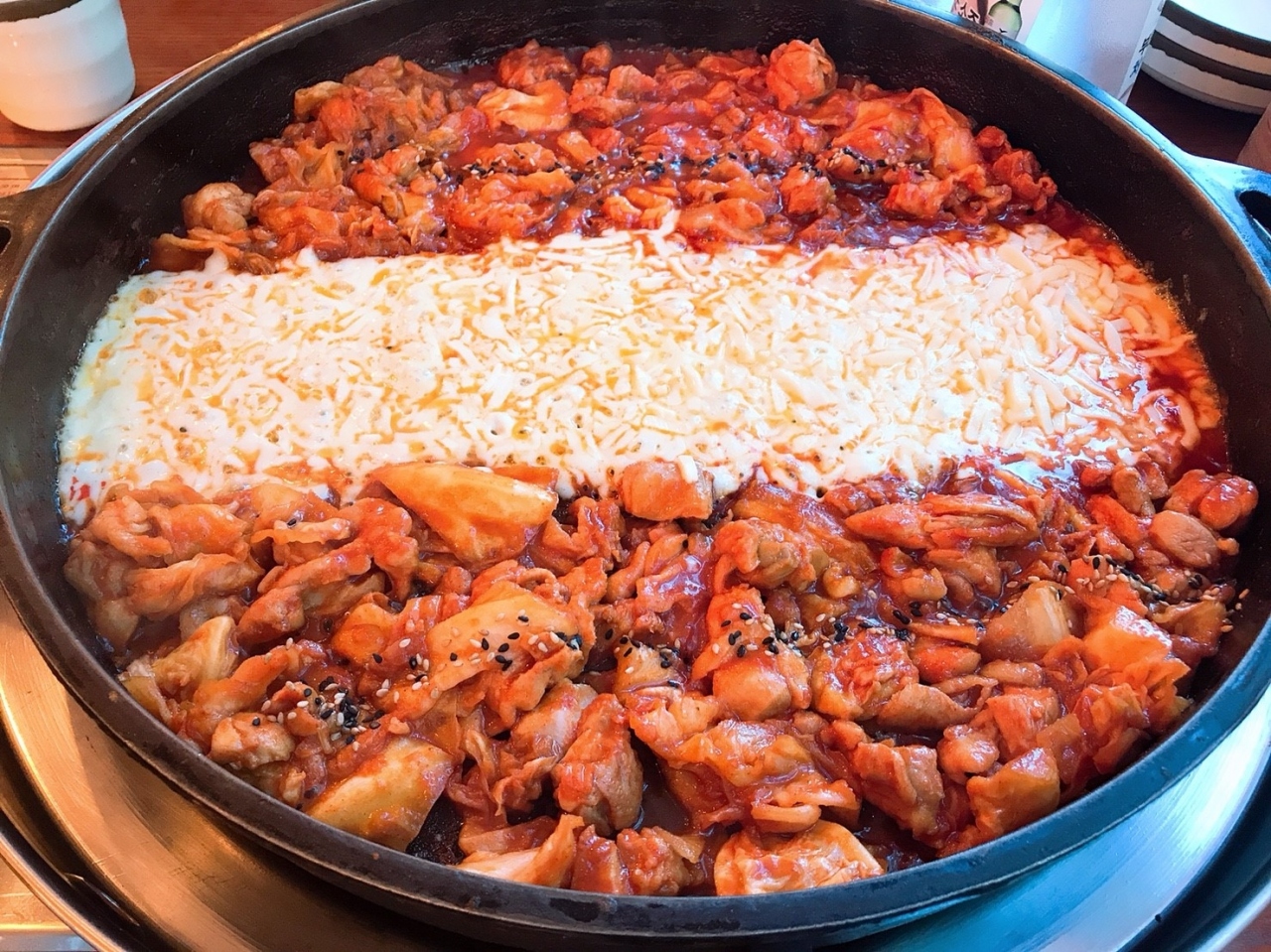 ビルの2階にある、チーズタッカルビのお店です。辛さが選べたので、一番辛くないものをオーダーしましたが、人生で1位を争うくらいの辛さでした。(私自身辛いのは苦手ではないのですが)テラス席からは明洞の街が見渡せ、清潔感のある店内でした。シメに店員さんがごはんを持ってきてくれ、残ったタッカルビと混ぜてくれました。