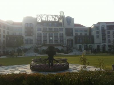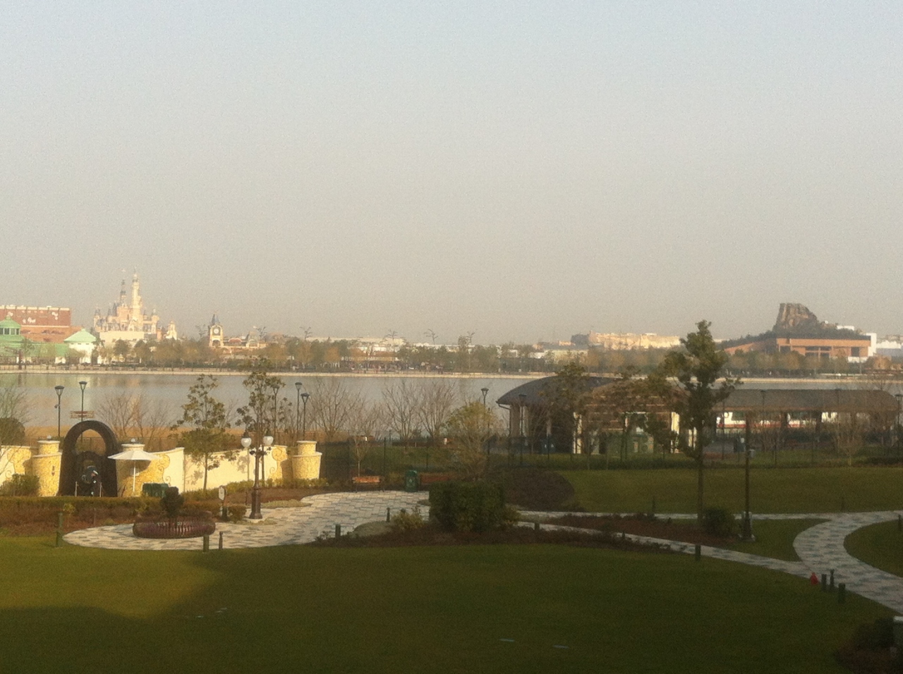 湖(池?)の向こうにパーク内のお城が見える、ロケーション抜群のホテルです。パークまでは無料バス、船で行くことができます。