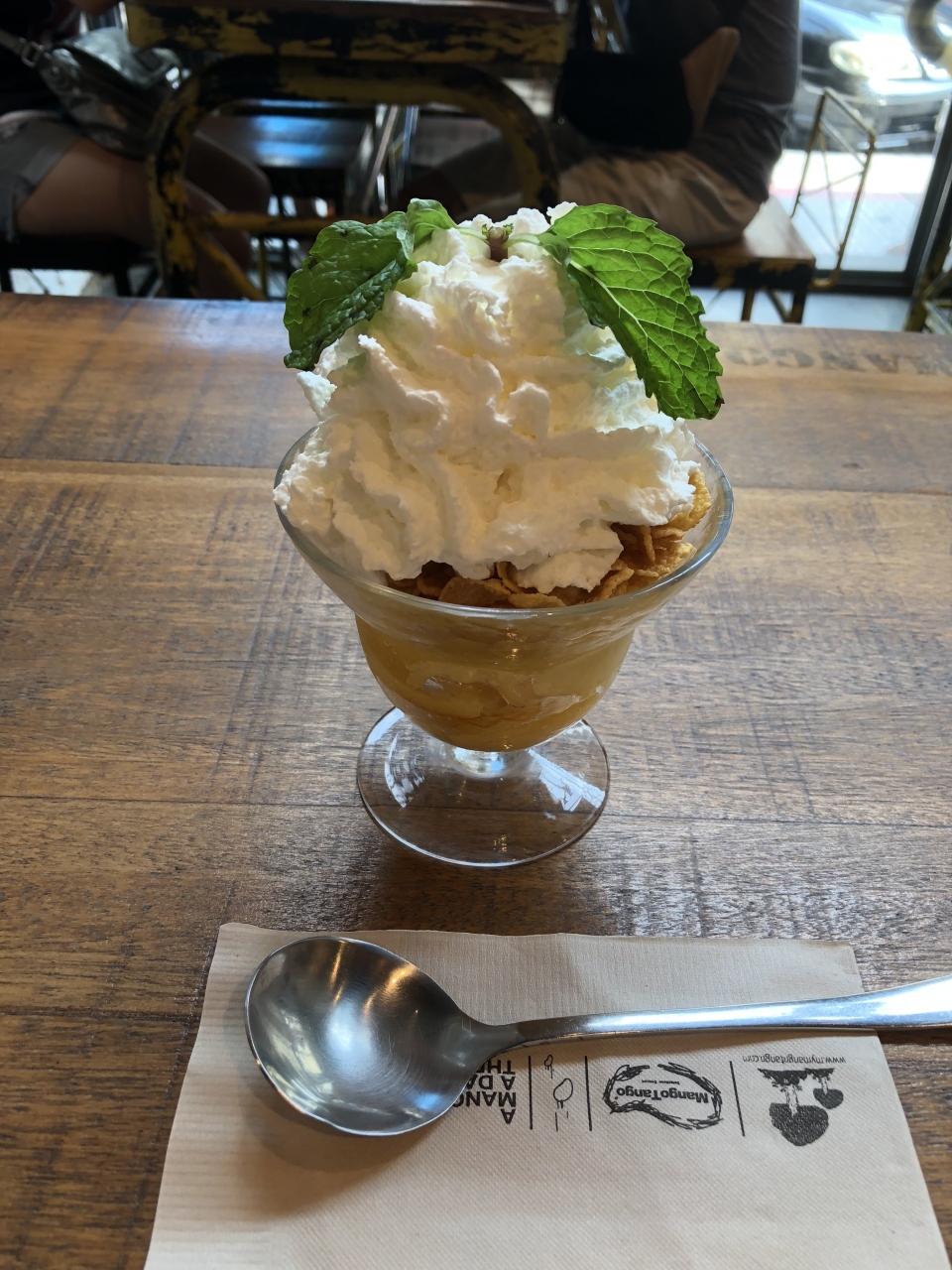 ガイドブックにも必ず載っている、マンゴーデザートの有名店です。店内はほとんど外国人です。なのですが、バンコクに行くたびに利用しています。ほとんどのお客さんが注文しているのはマンゴーとアイスがのっている「マンゴータンゴ」なのですが、個人的にはマンゴーパフェが好きで毎回注文しています。ガラス張りで開放的な店内も好きです。