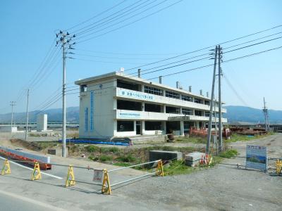 陸前高田市立気仙中学校。三階建ての三階まで津波が押し寄せた校舎が今も残...