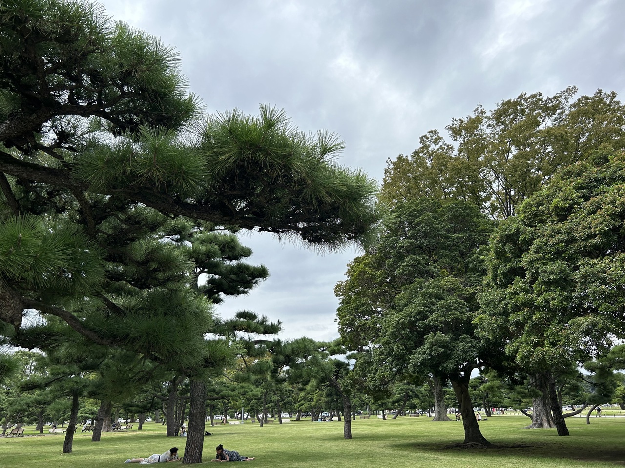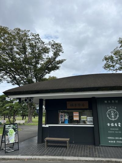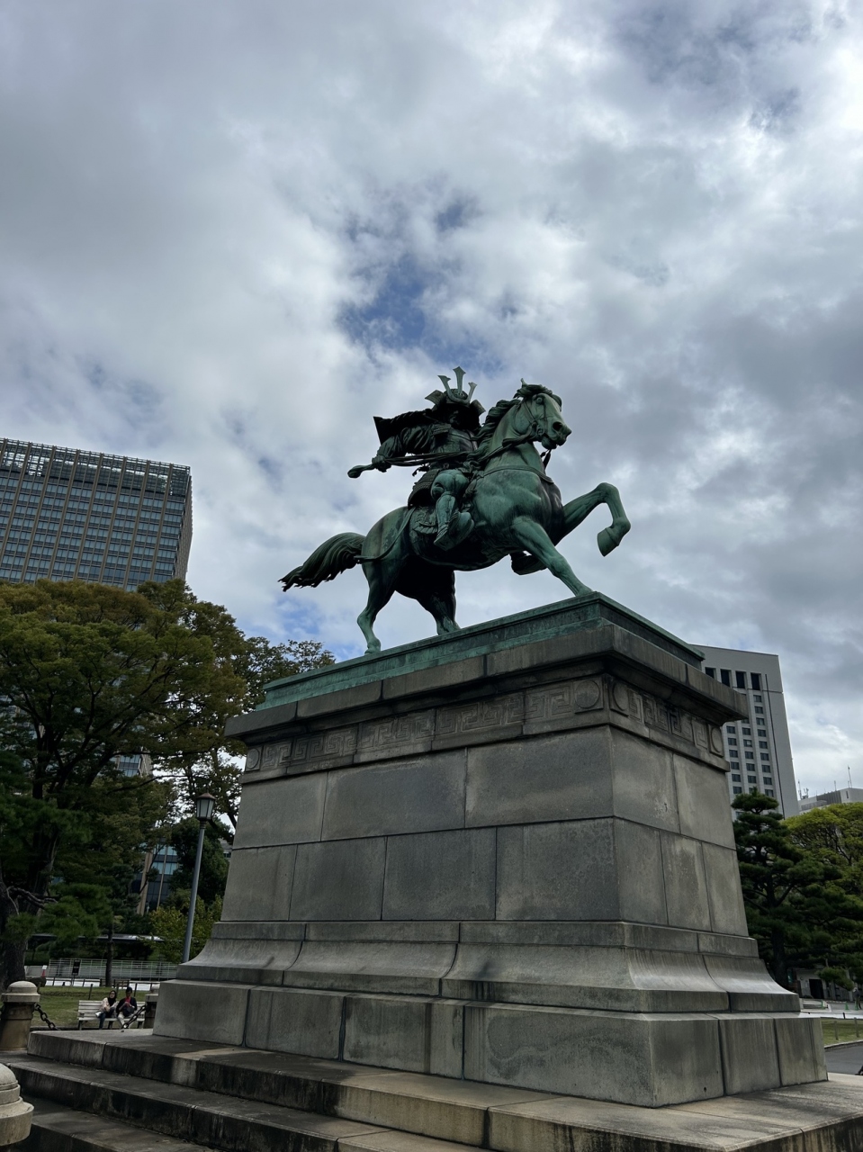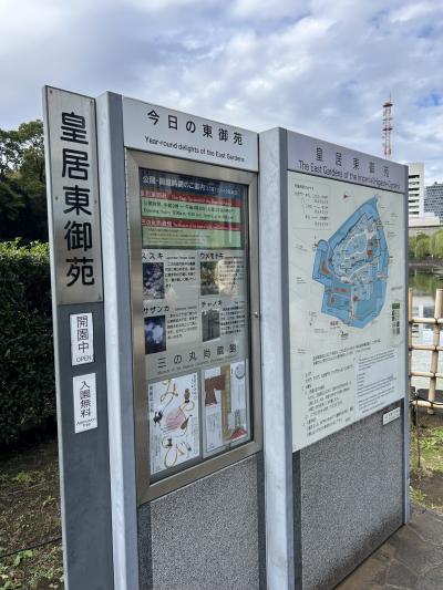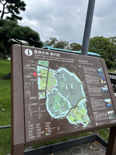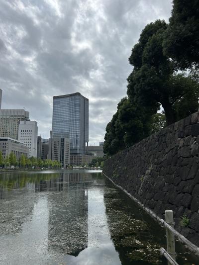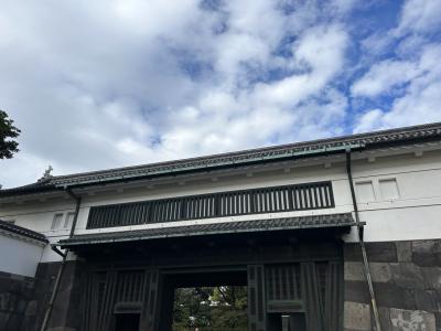 バスツアーで赤坂迎賓館を訪れる予定が突如要人の来館にて中止になりました。 急遽予定変更で皇居外苑に降ろされました。 警備の人たちも多い中 皇居外苑散策をしました。 楠木正成像は有名ですがじっくり見ることはなかったです。 芝生やベンチも多くくつろいでる様子に癒されます。 売店には皇居由来のお土産も沢山ありました。 金粉いりの日本酒を購入しました。