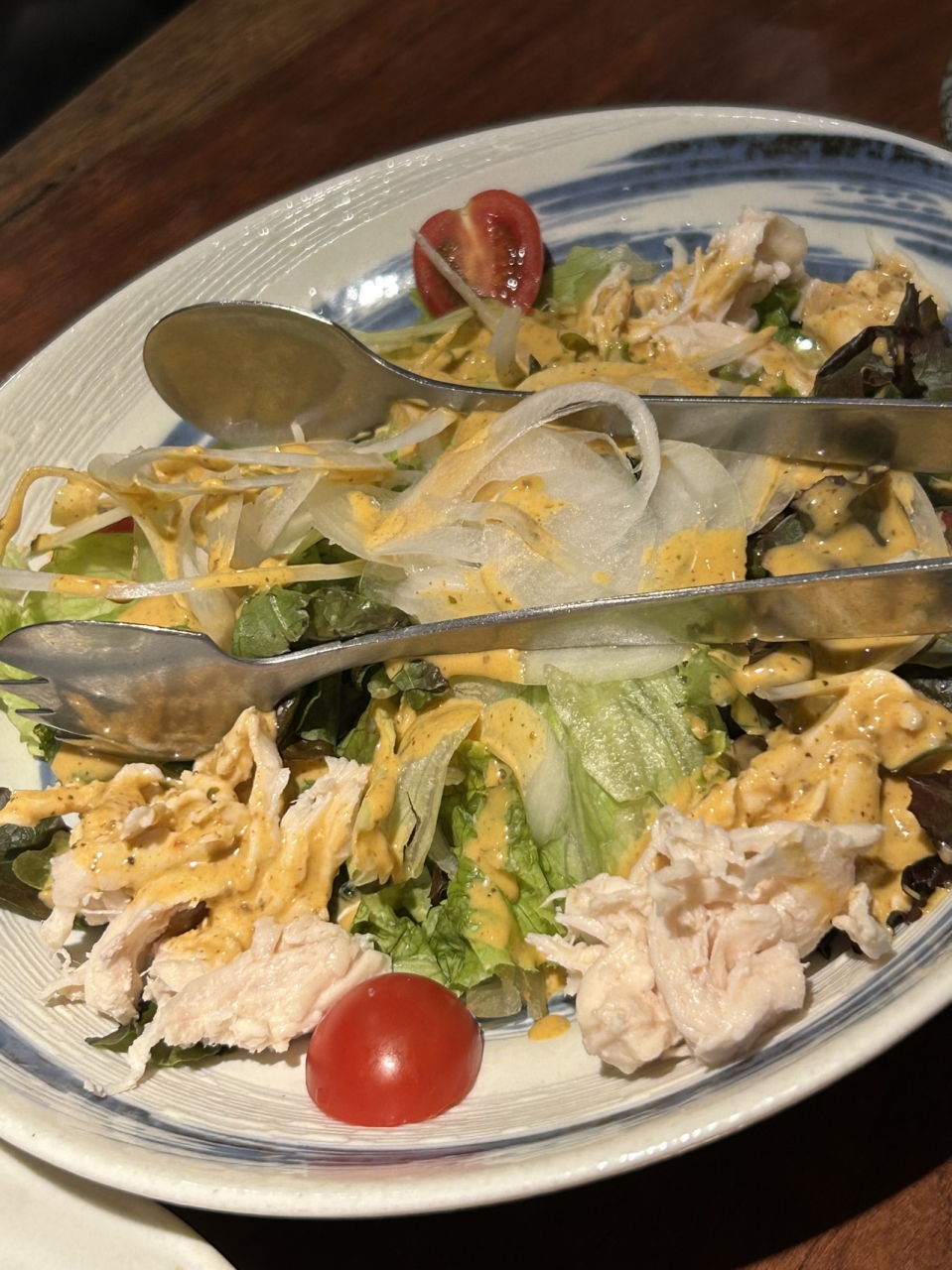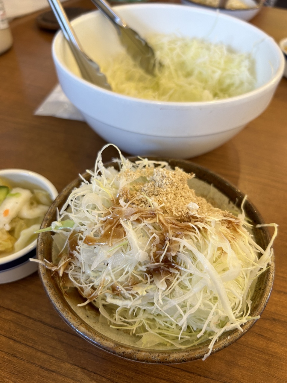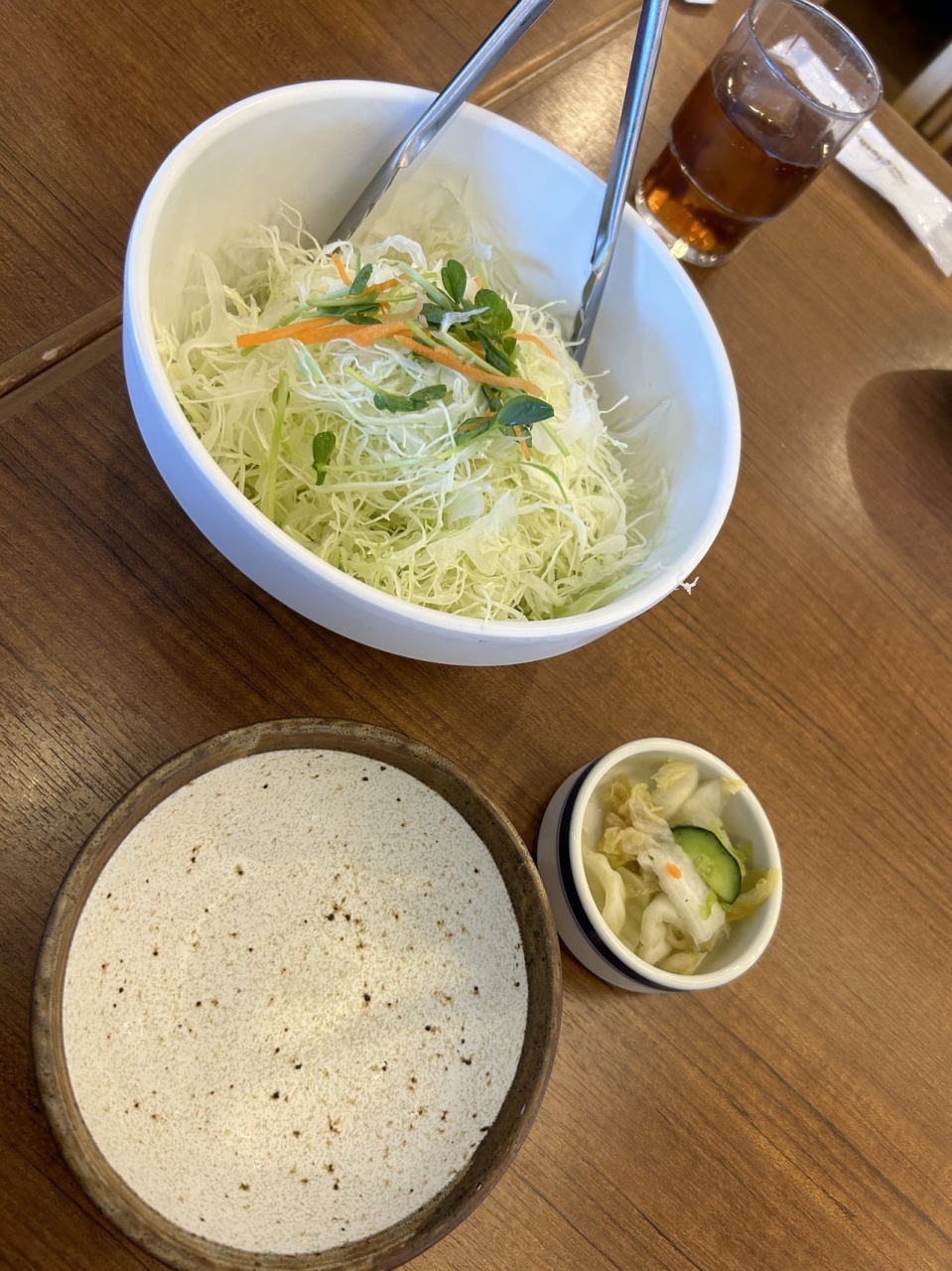 キャベツがお代わり無料なのでメインの前にしっかりと食べています