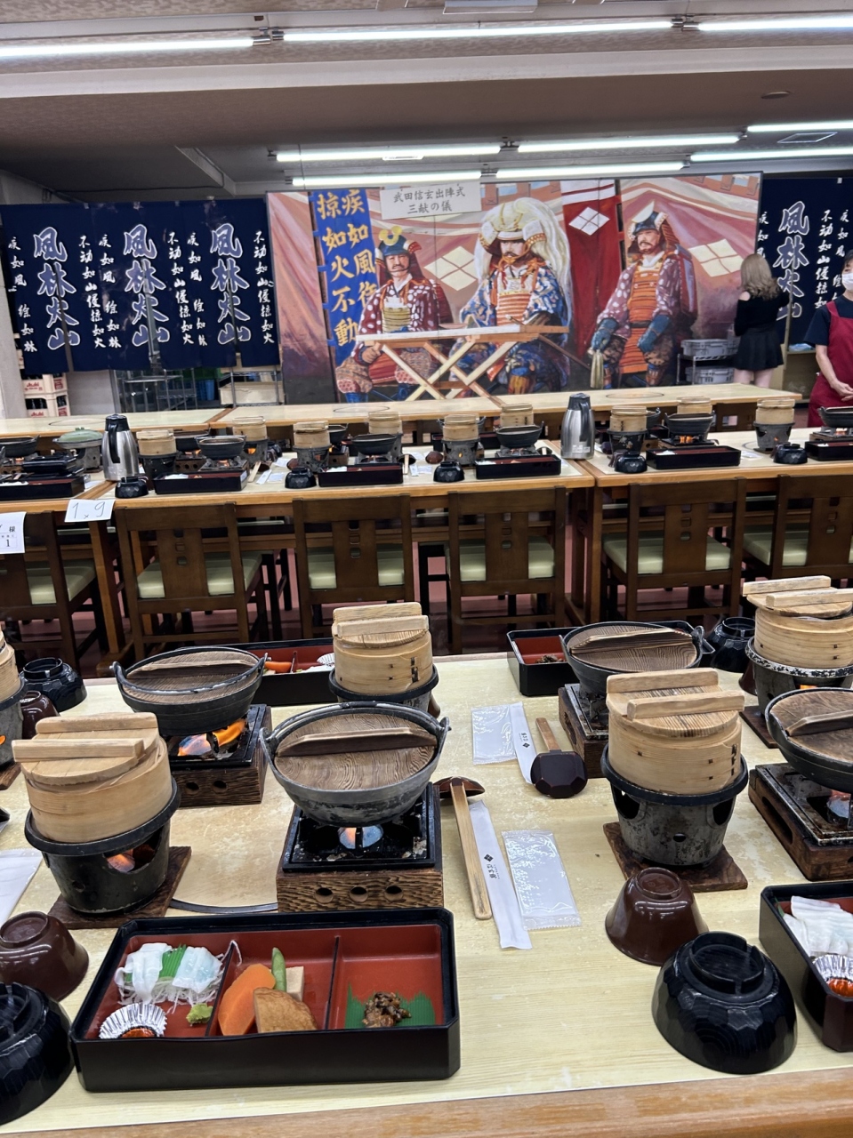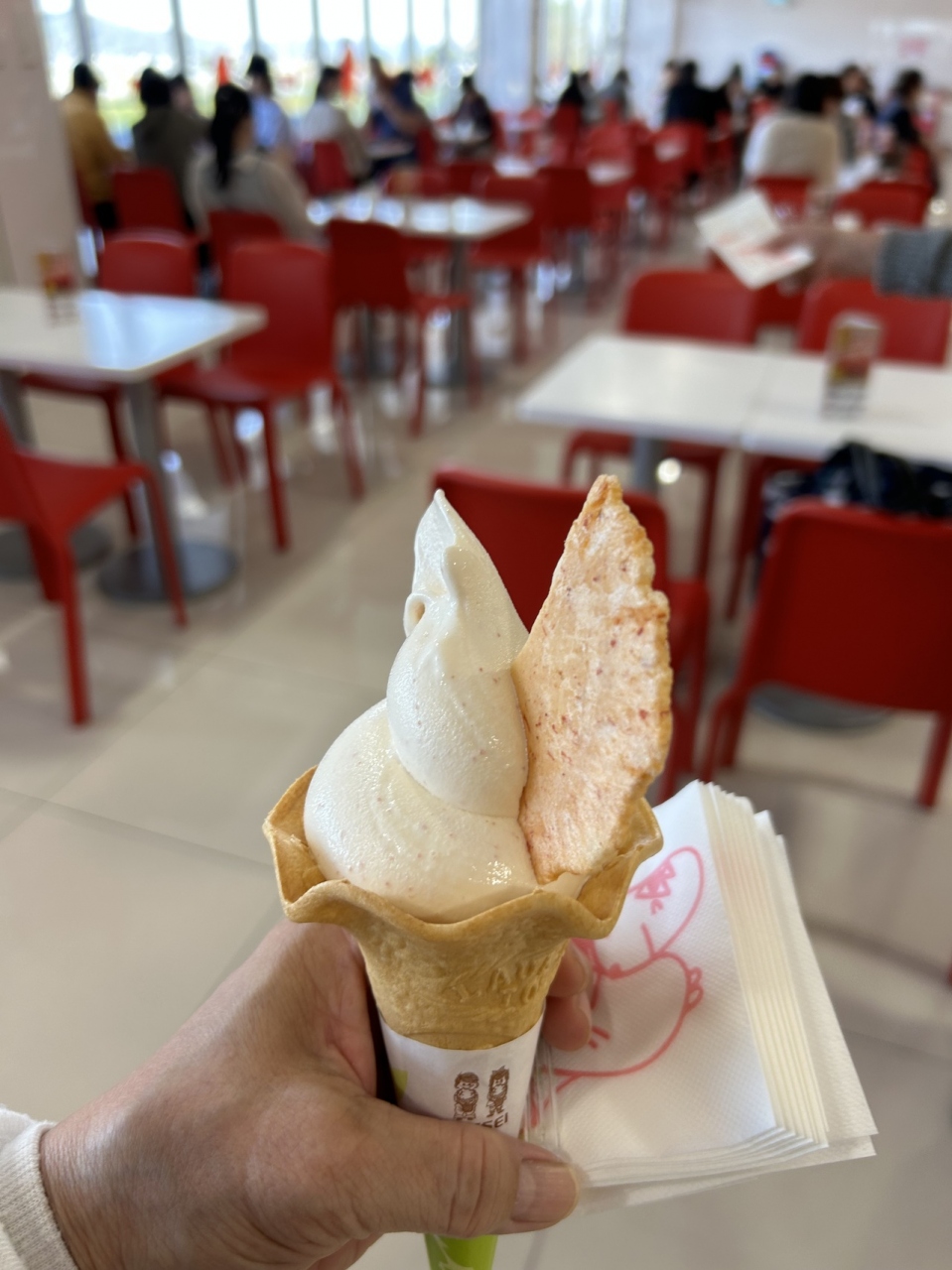信玄館 しんげんやかたと読みます 2階の広間で昼御飯です 山梨ですからほうとうを食べられます 1階は売店 お土産にほうとう購入 地下にはトイレ 出たところには黄金の武田信玄が座っています 目線はお墓のある恵林寺を見つめているとか 巨峰ソフトクリームはこちらの名物 しかし 今回のテーブル分けには驚いた お一人様はお一人様テーブル みんなに背中を向けてポツネン!いやいやそこまで孤独にしなくても 食事は相席が多くおしゃべりも楽しめたのにこの席割は初めてだった すみっこに席を空けて置かれた まあ一人で来るような奴は一人が好きなんでしょ!もいいっかーさっさと食べて観光と買い物しましたから#信玄館 #昼食 #ひとりぼっちの席 #恵林寺 #巨峰ソフトクリーム