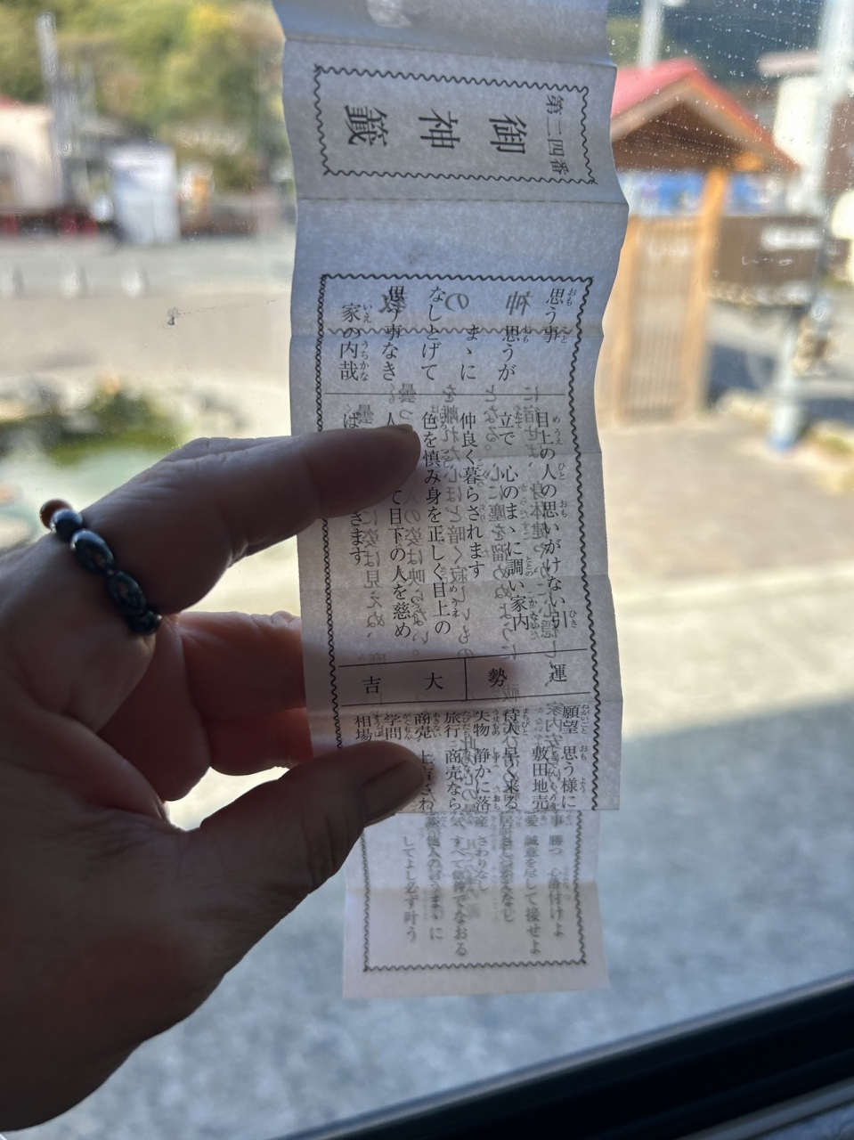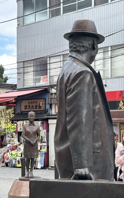 寅さんとさくらの銅像もある駅から参道を歩き柴又帝釈天に行けます。 少し歩いたところに寅さん記念館もあるのですが時間の都合で外観を見ただけで終わりました。 髙木屋老舗で手ぬぐいを購入しのれんにしました。 寅さんがいるかのような賑わいです。 草団子は相変わらずの人気でした。 柴又帝釈天でのおみくじは久しぶりの凶が出ました。 これからよくなるしかないということですね。