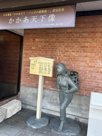 館内に入る前には 子育て家事そして養蚕にと良く働く群馬の女性 かかあ天下 の銅像が置いてある。