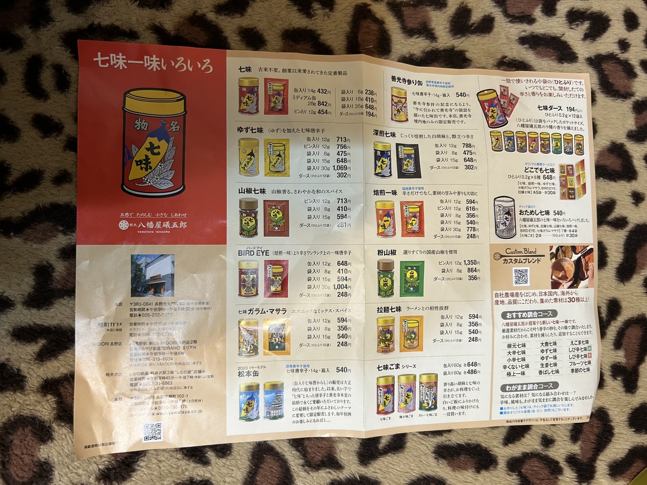善光寺の七名物の一つ、根元やわたやいそごろうの七味唐辛子です。唐辛子の缶を見たら知ってる!と思う人も多いのではないでしょうか。秘伝の調合七味も必需品ですがその他にも沢山の商品が出ています。通販で購入できるので自分好みを見つける事ができるでしょう。今回は大きな缶に惹かれて七味ごまを選びました。善光寺参り缶も買えば良かったー現地限定品ーまた行こうと思っています。