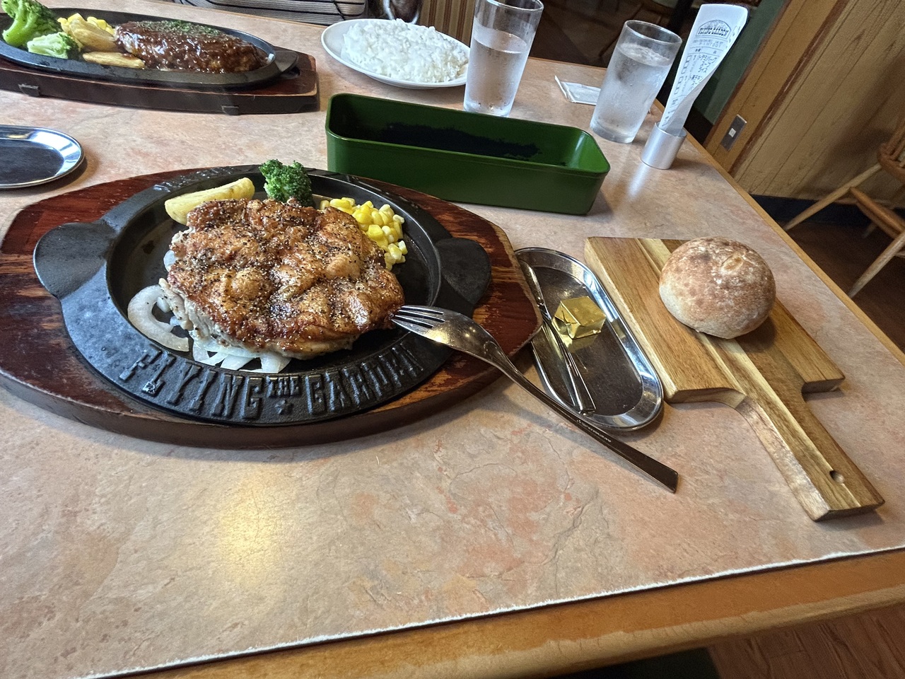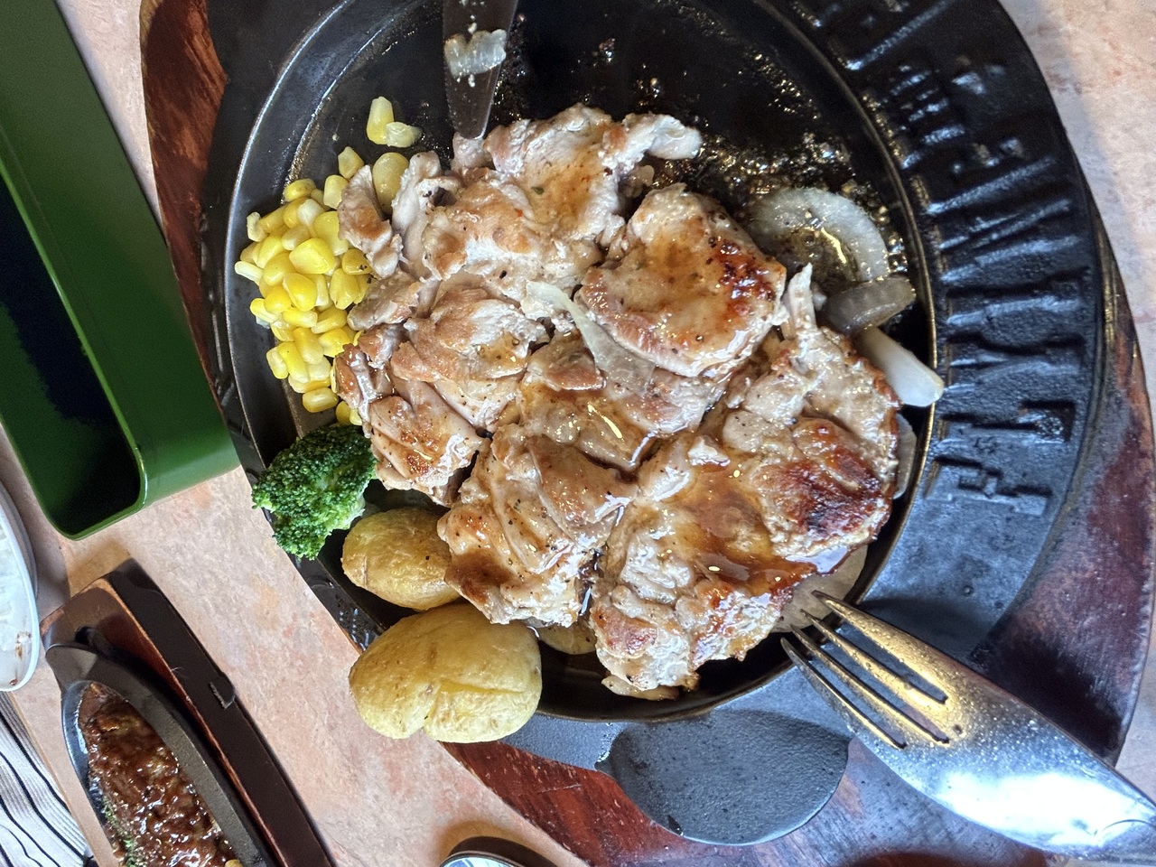 私はハンバーグよりチキンを頼むことが多いですがスパイスと鉄板の熱々が食欲をそそります。- 旅行時期