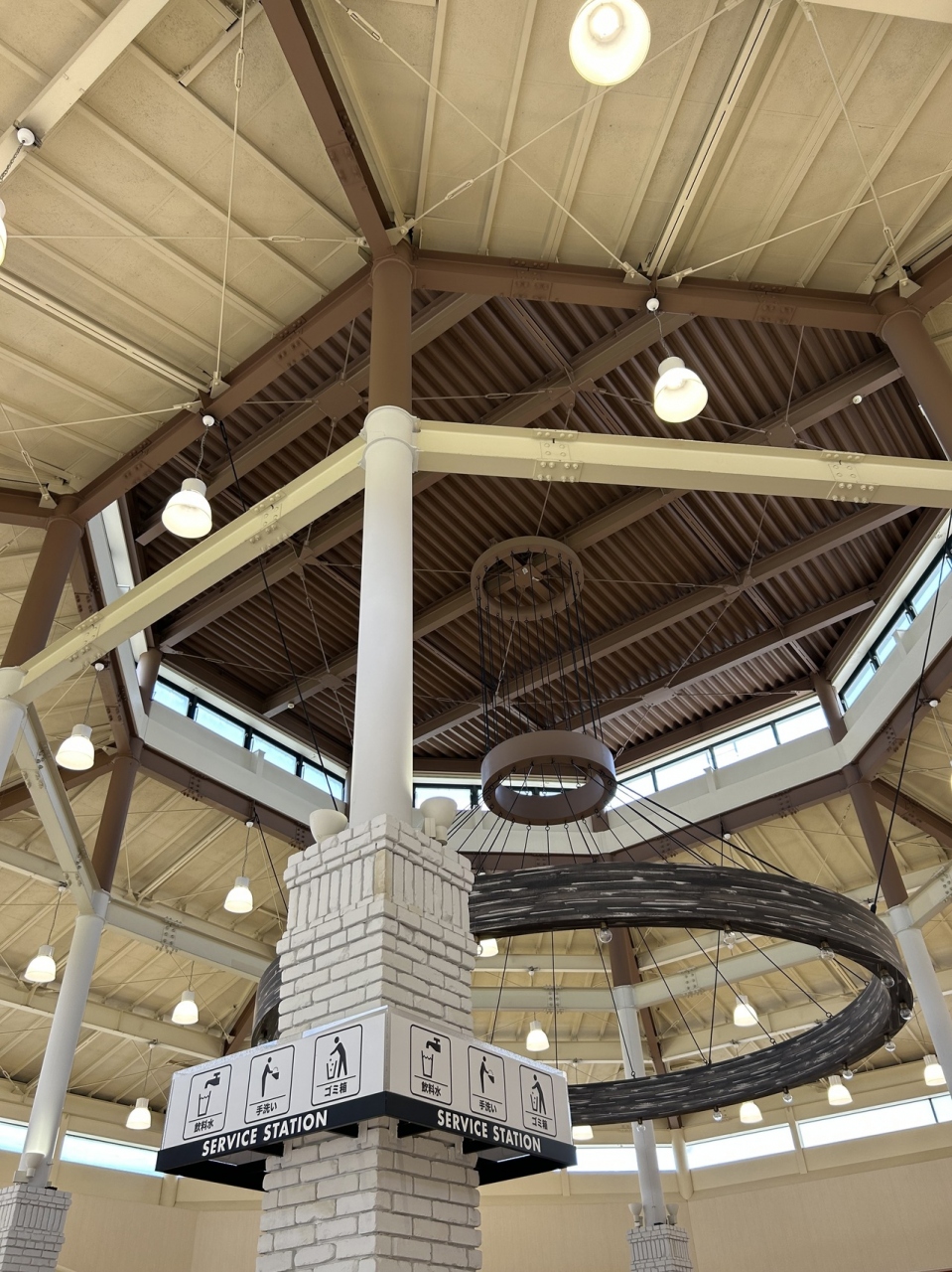 遊具もあり足湯もあります。外のベンチでのんびりするには暑すぎる日でした。ミストが噴射されていて助かりました。お土産ものは各地のものがあり面白いです。食事をするところもあり佐野ラーメンと芋フライをいただきました。遊べる道の駅という感じです。- 旅行時期