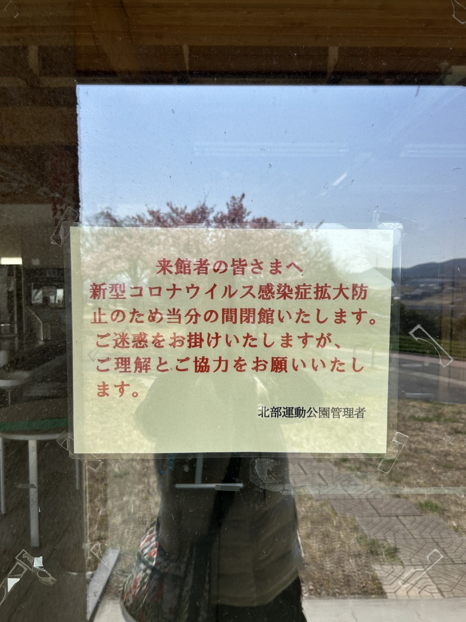 休館の中も公園はウォーキングやサイクリングをする人で賑わっていました。