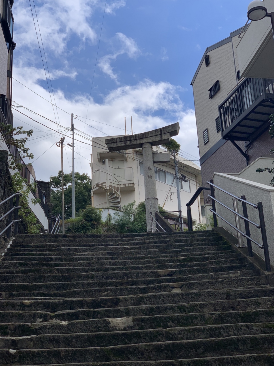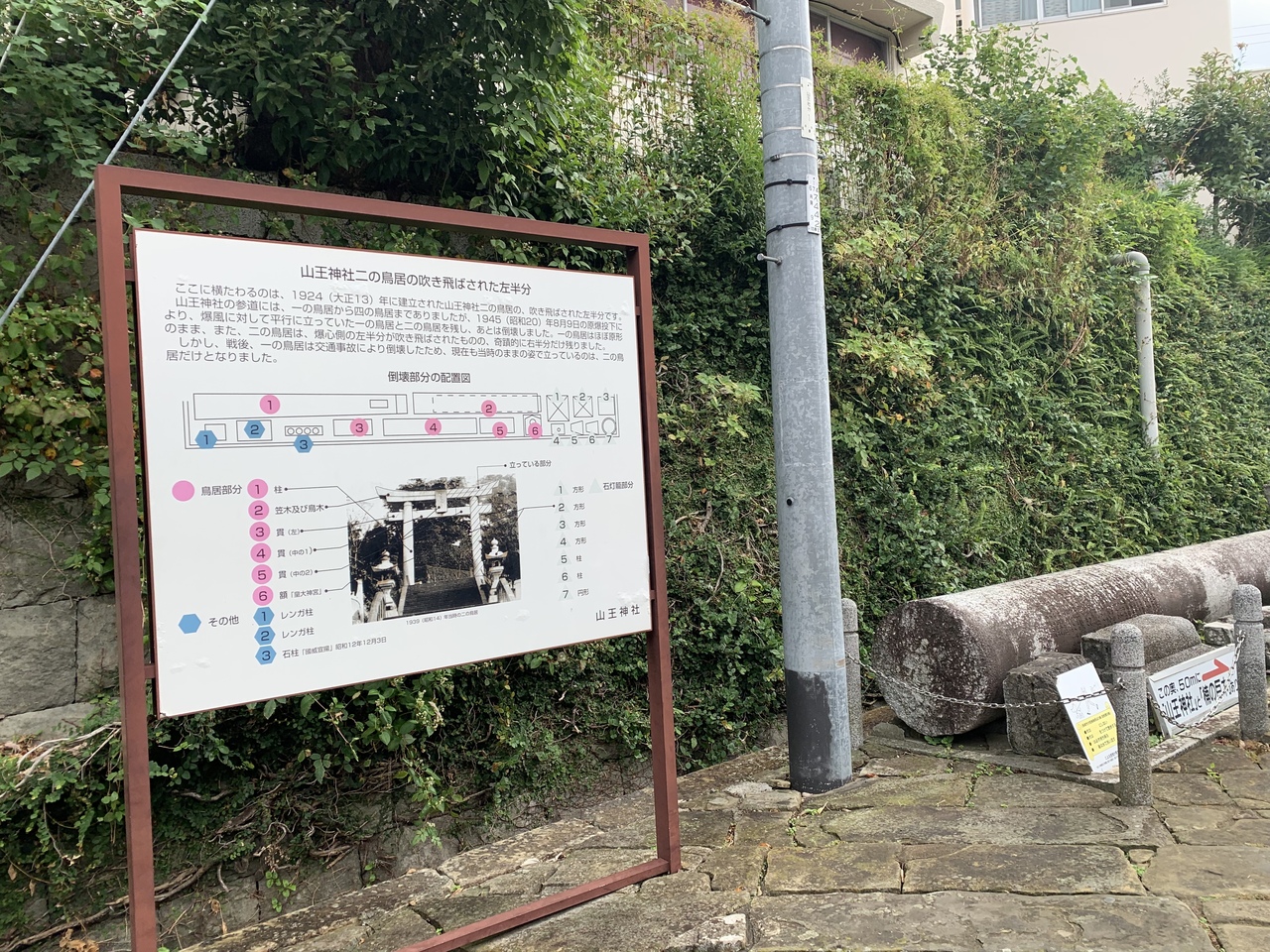 あまりのバランスにこんなオブジェかと思ってしまいます。被爆楠木と一本柱として有名な山王神社です。