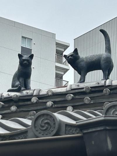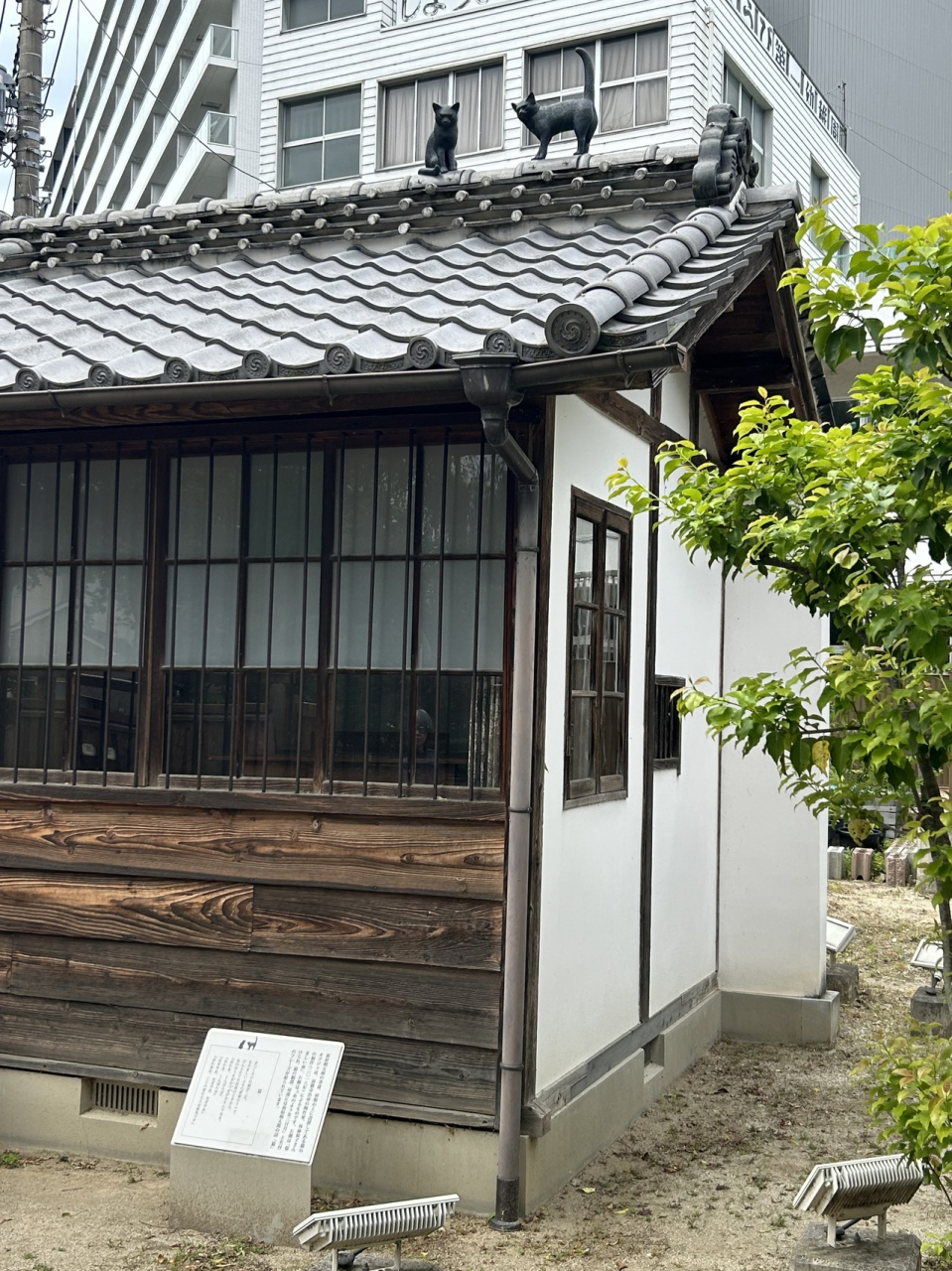 #広瀬川 沿い 街のど真ん中 昔は #製糸工場 がたくさん立ち並んでいたろうに #萩原朔太郎 おぼっちゃまだったんだな #萩原朔太郎生家跡 屋根の黒猫と目が合った