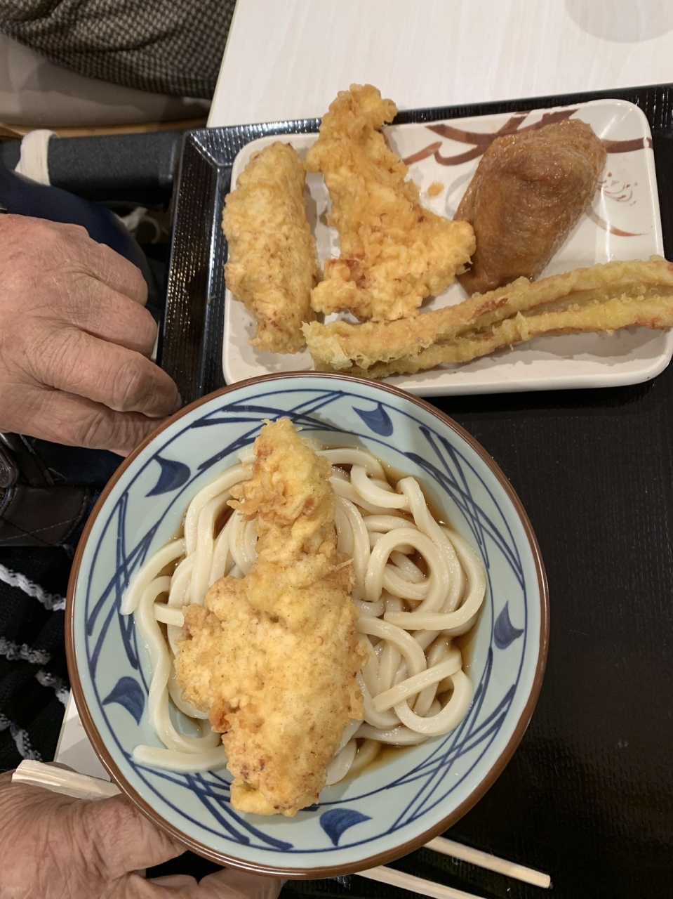 トッピングを選びながら揚げたてのかしわ天が待てました