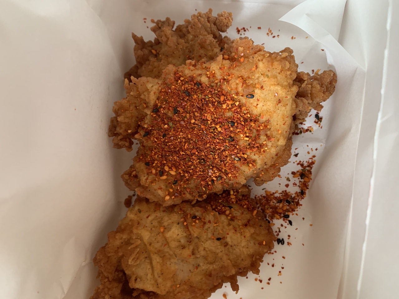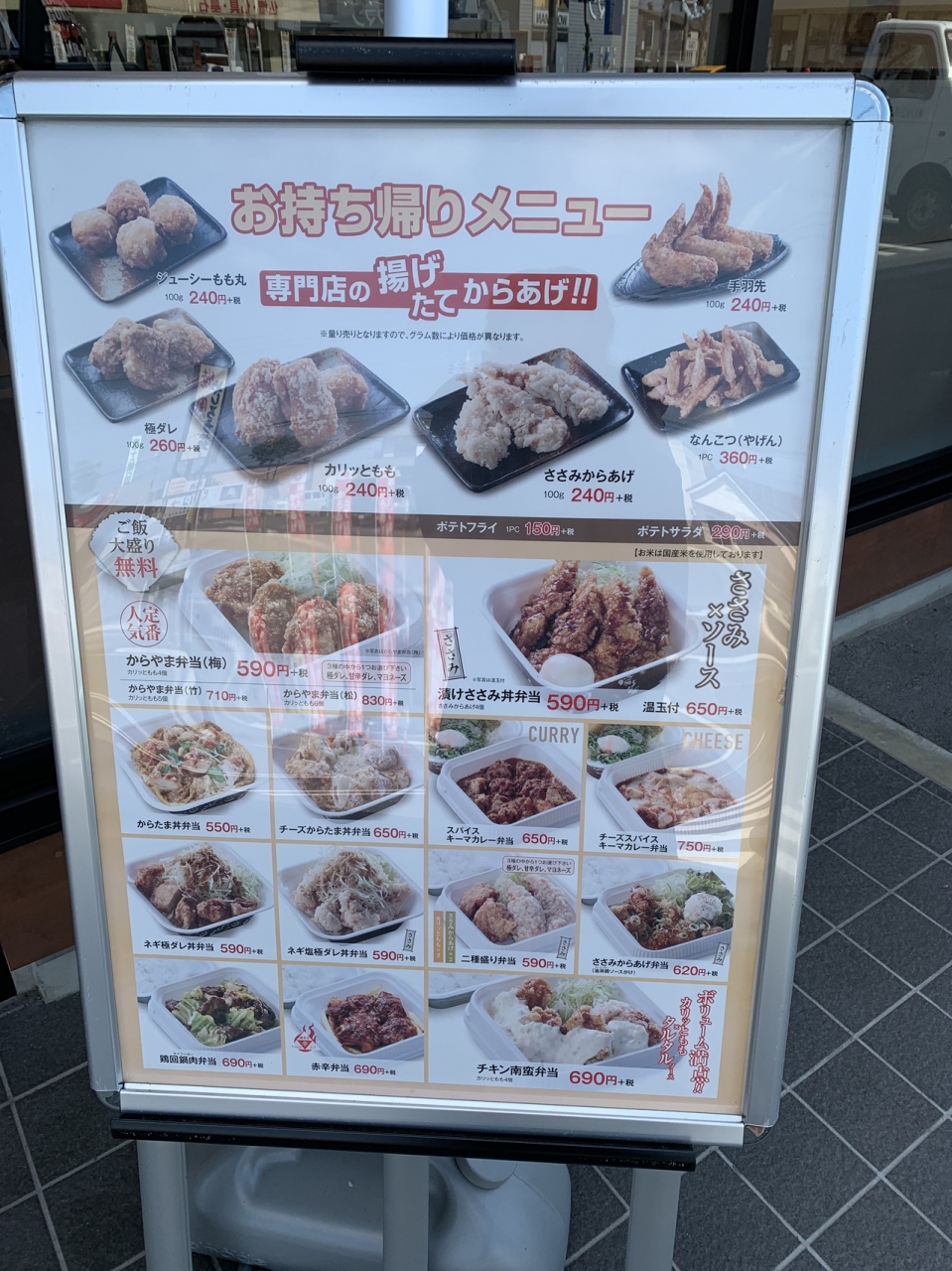 唐揚げの専門店が出来たので行ってみました。メニューはカレーまであって店内で楽しめそうです。鶏肉だけでは飽きちゃうでしょう。でもテイクアウトの人が多いですね。電話予約していなかったので待たされましたが熱々のカラッと揚がった唐揚げが食べられました。