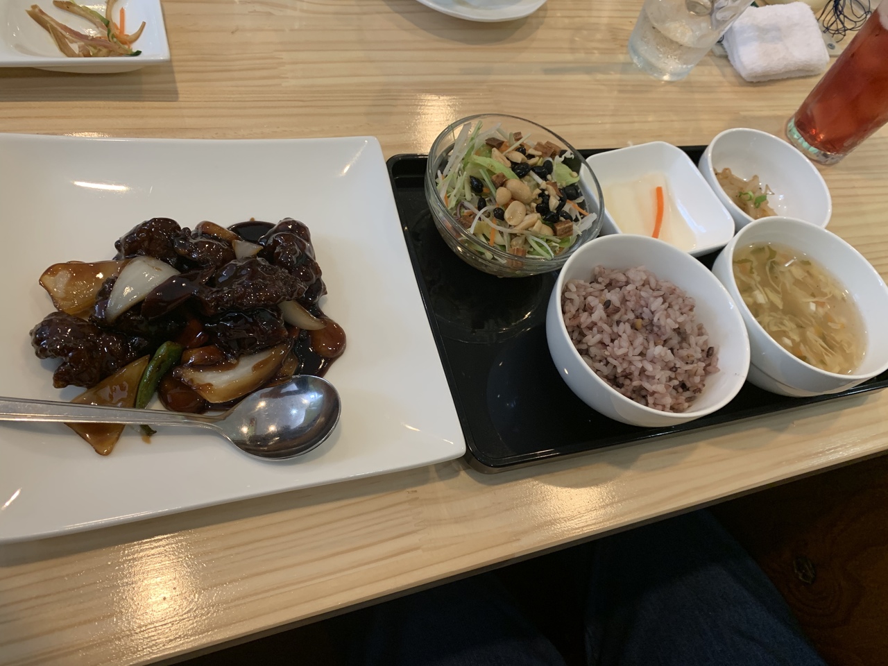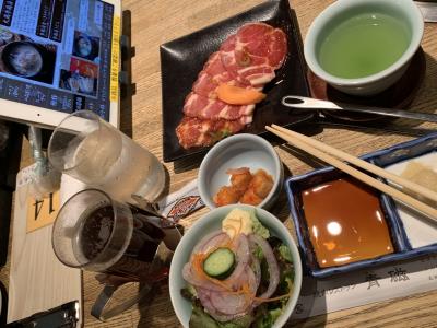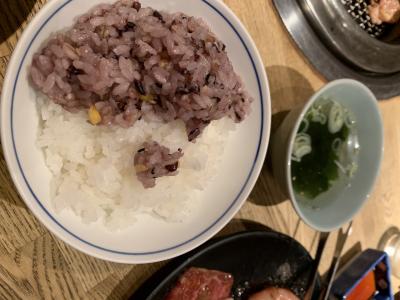 サークルの後のランチに行きました。焼く人と焼かない人で分かれてたべました。ランチメニューも豊富でお肉も選べます。今回は豚肉にしました。ドリンク、サラダ、デザートも付いて1100円の消費税込みです。タッチパネルで注文、五穀米は人数分無くてハーフとなりました。