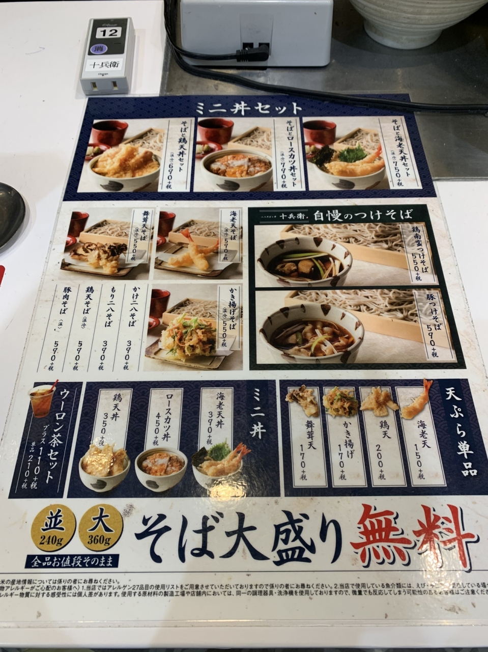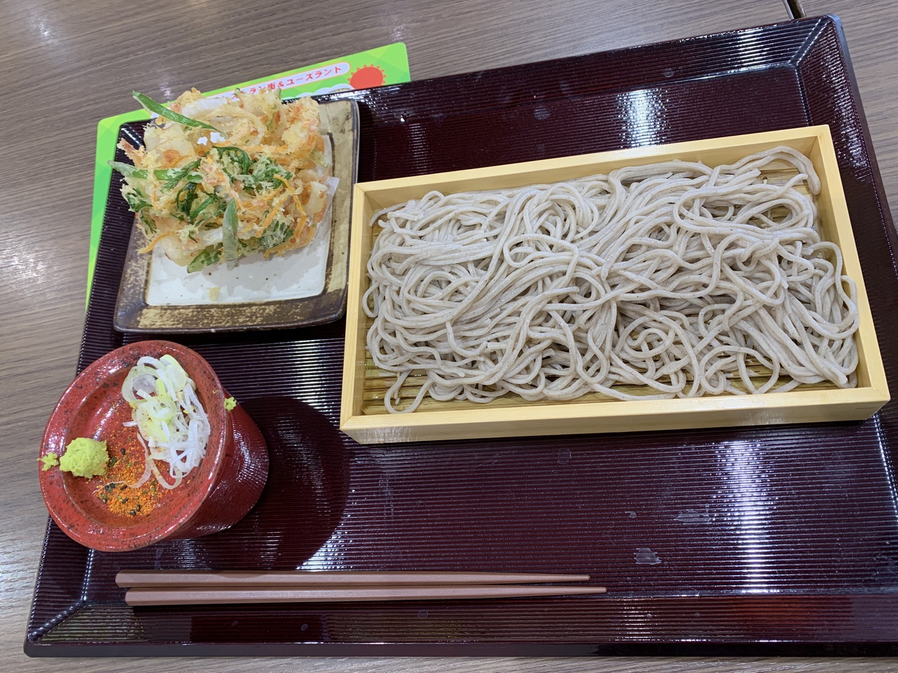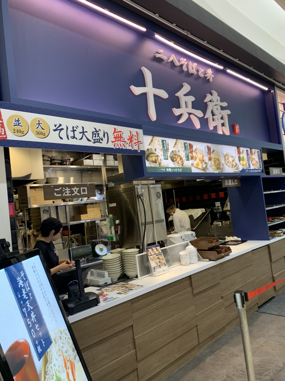 フードコートでお蕎麦はなかなか食べられないので待たされますが注文しました。茹でたてのお蕎麦をしっかりと計りに乗せて 大盛りも無料です。その場で揚げているかき揚げも付いてコスパは良いです。狭いキッチンで大変そうでした。