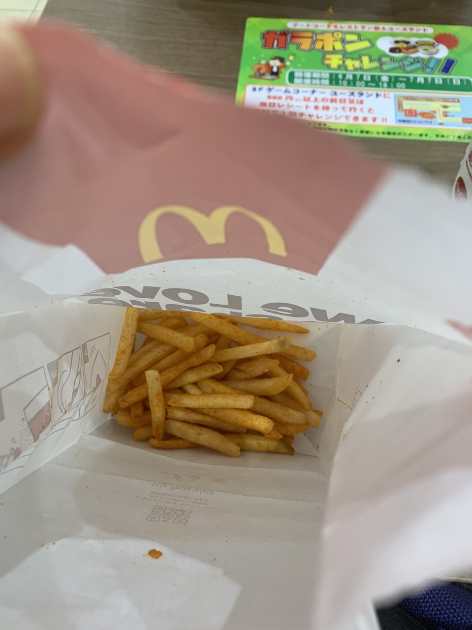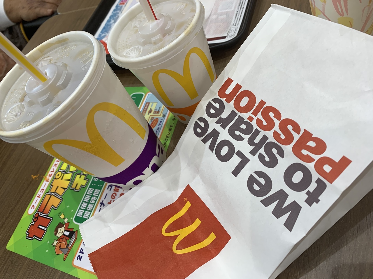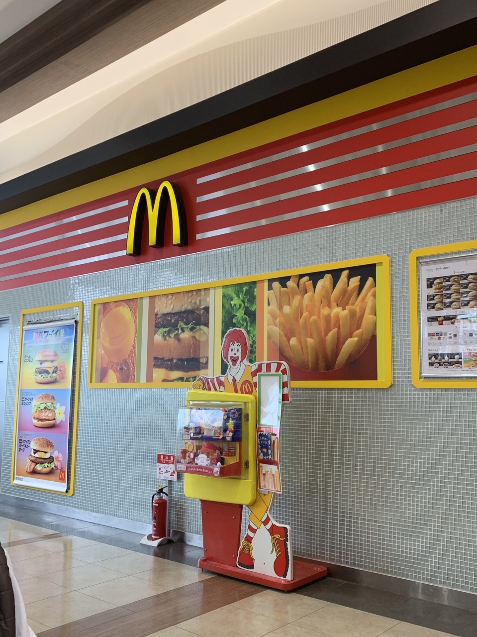 時間つぶしにイオンへ行く。ウインドーショッピングも疲れマクドナルドでひとやすみしました。人手不足なのか窓口は一つのみで長蛇の列でした。それでもフードコートはくつろげます。子供用スペースは椅子の高さが低くなっていました。