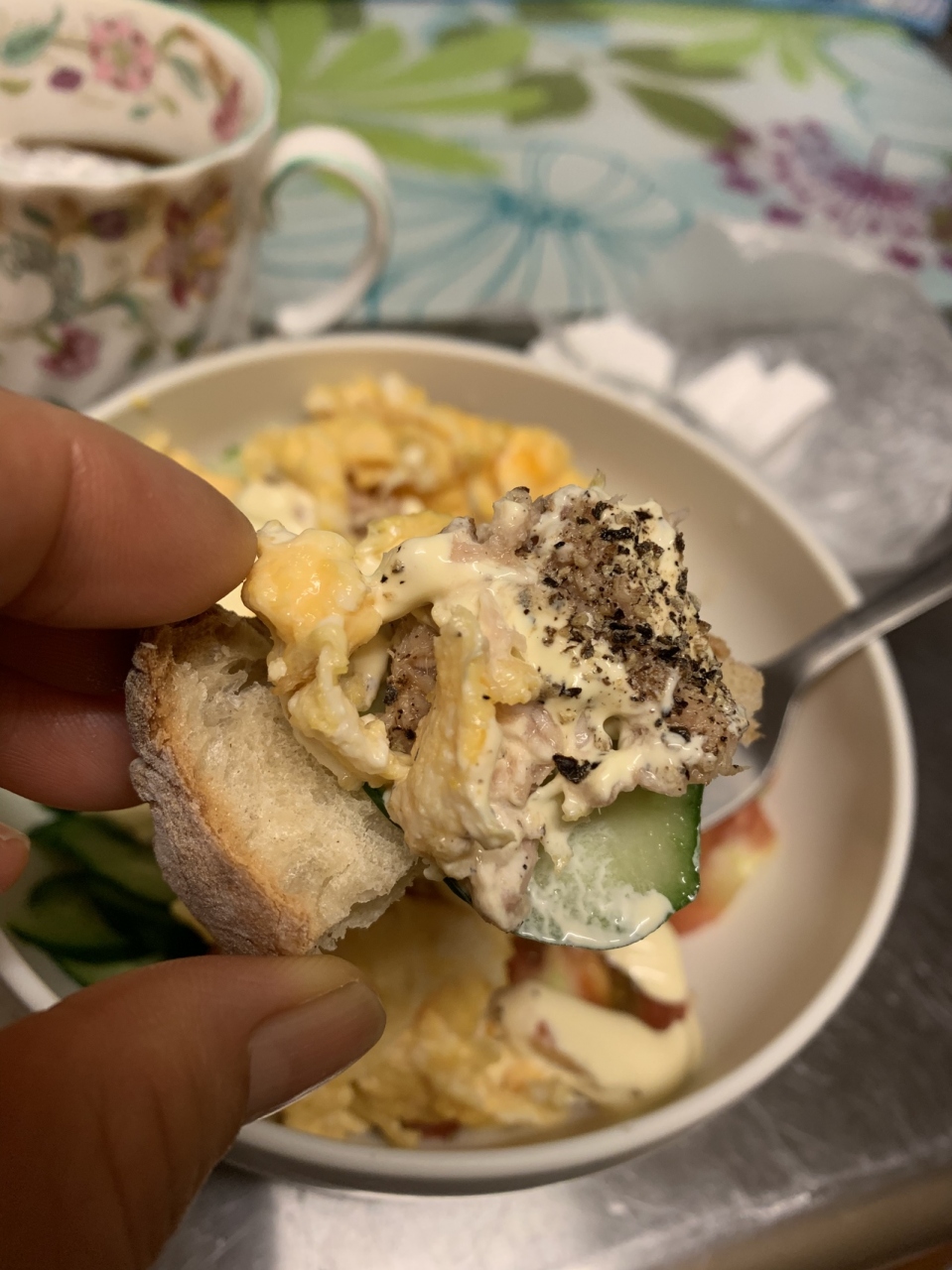 歌舞伎の帰りに朝食用パンを購入しました。ダイエット中でもあるのでライ麦パンや発酵パンがほしくて、名物のクロワッサンは遠慮しました。痩せたら食べたい!どれもとても美味しかったです。サラダに目玉焼きにコーヒーにとても合います。