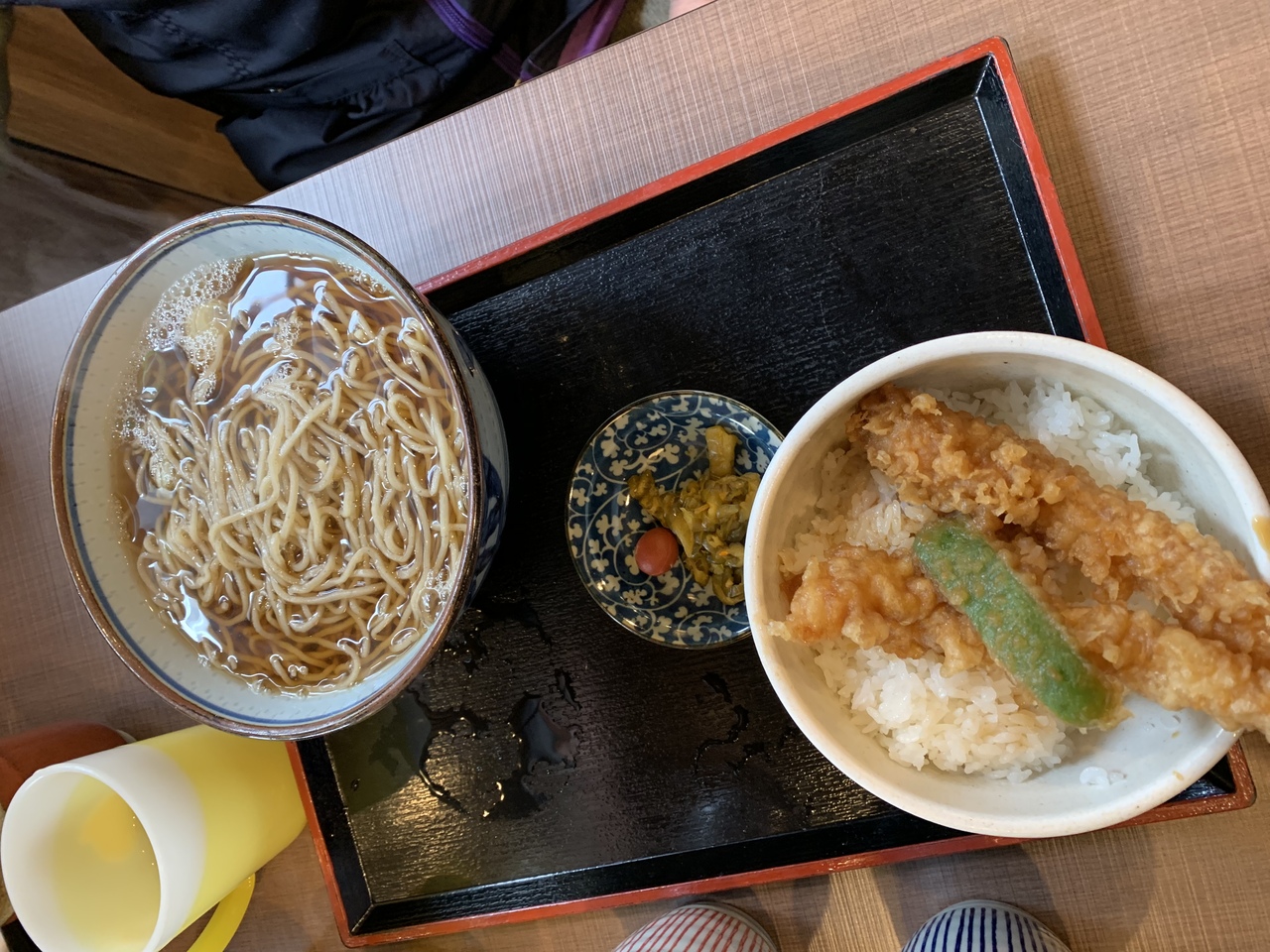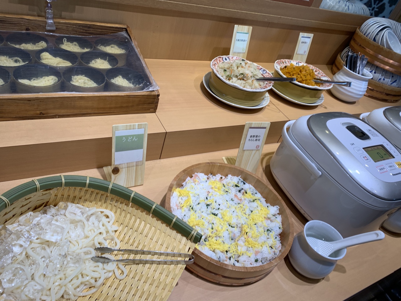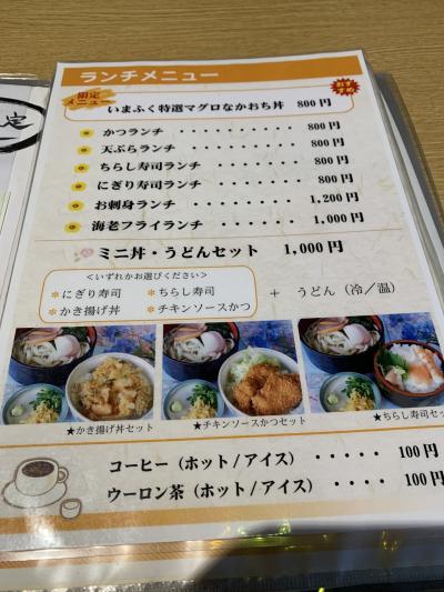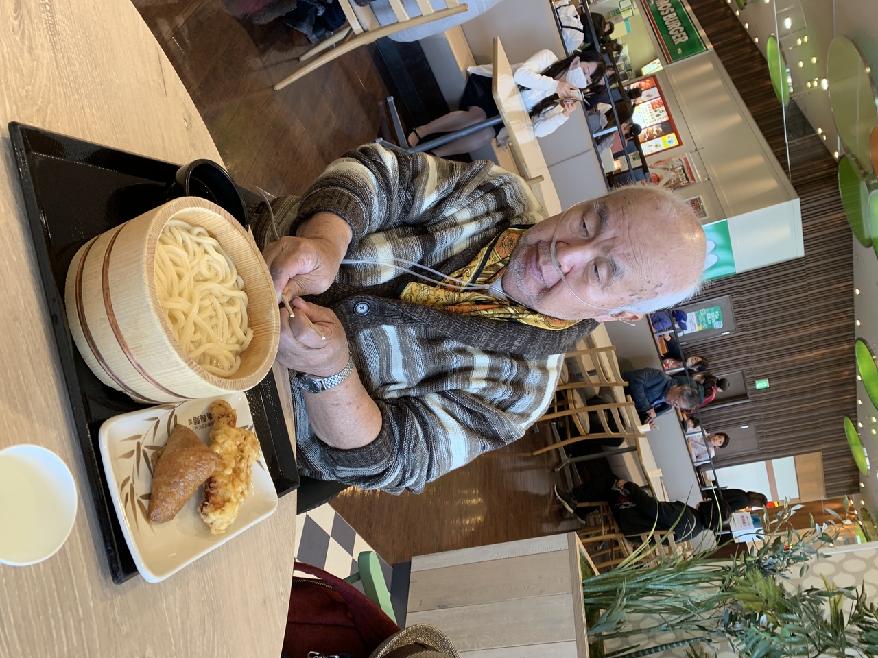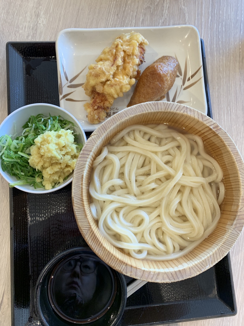 伊勢崎店スマークのフードコートは広くて好みのものをそれぞれ選べるので便利だ。今回は丸亀製麺のうどんと天ぷらにした。いなり寿司もありトッピングできる。ネギと生姜はいつも山盛りもらう。おろしたての生姜は胃もたれを防止。体も温まる。