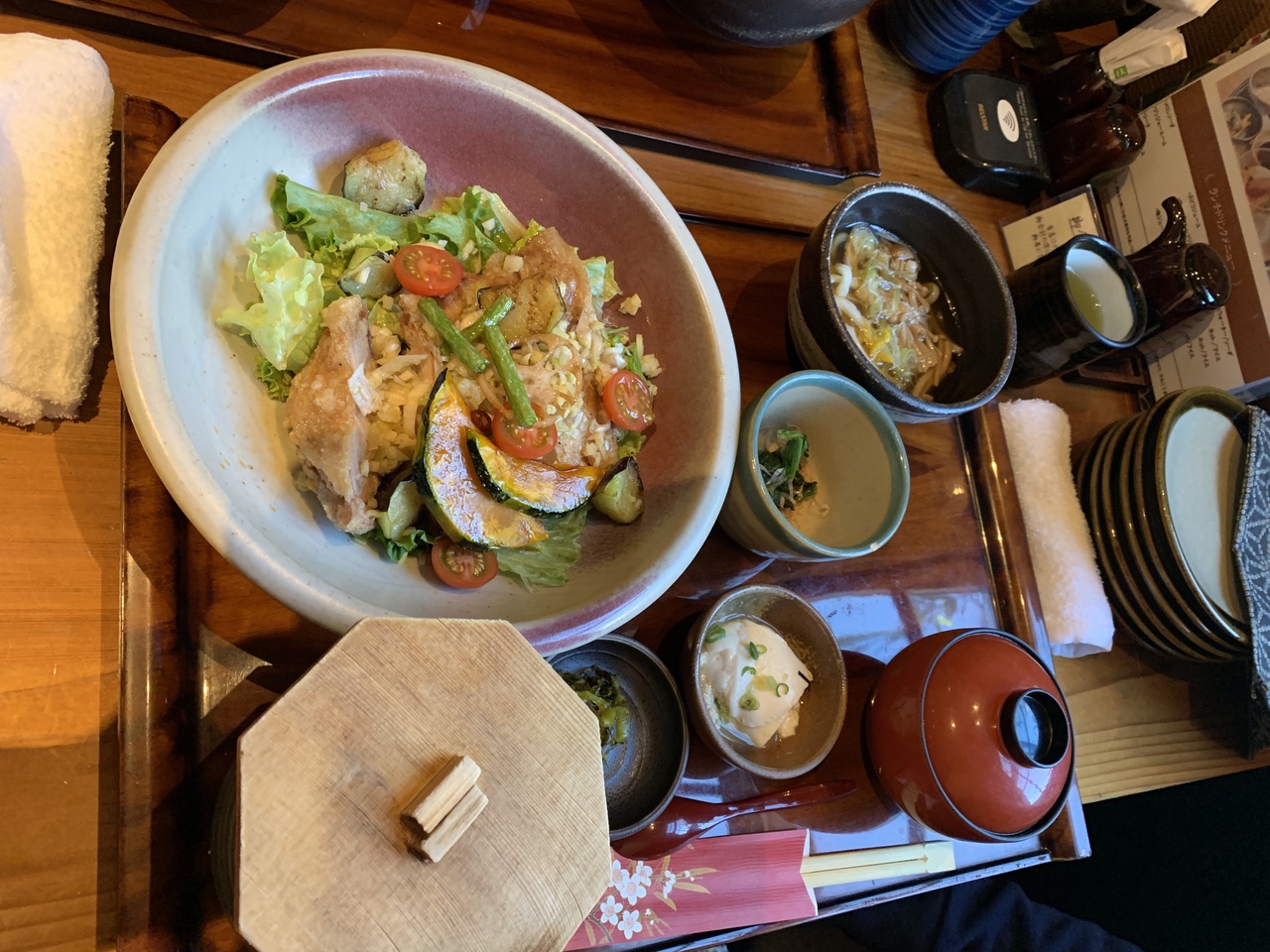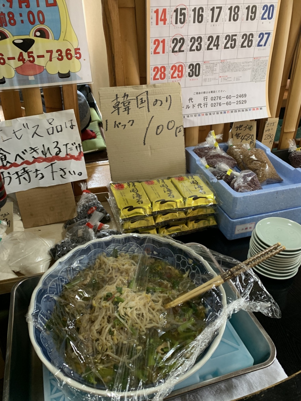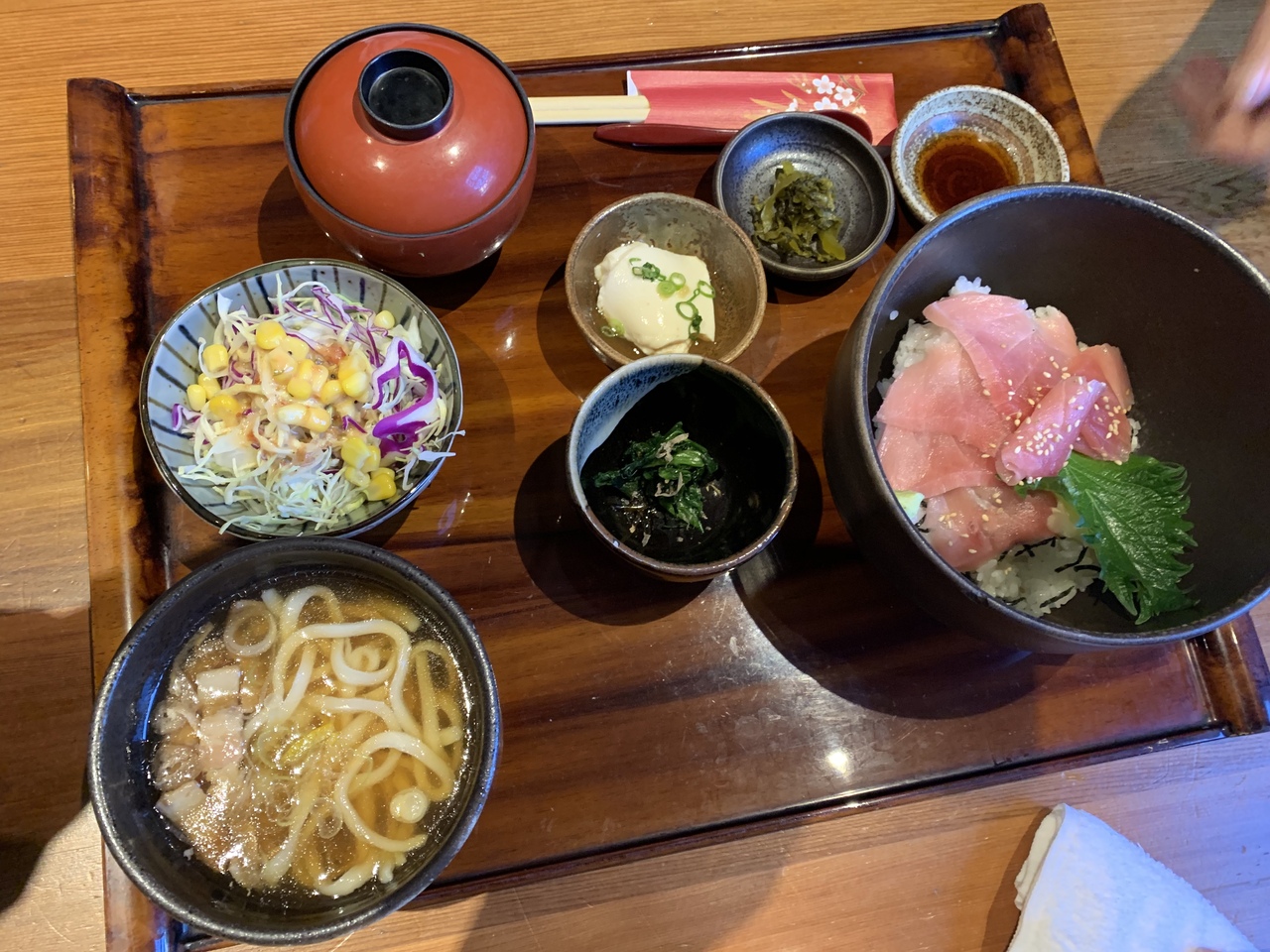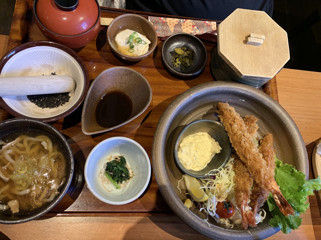 伊勢崎店スマークのフードコートは広くて好みのものをそれぞれ選べるので便利だ。今回は丸亀製麺のうどんと天ぷらにした。いなり寿司もありトッピングできる。ネギと生姜はいつも山盛りもらう。おろしたての生姜は胃もたれを防止。体も温まる。