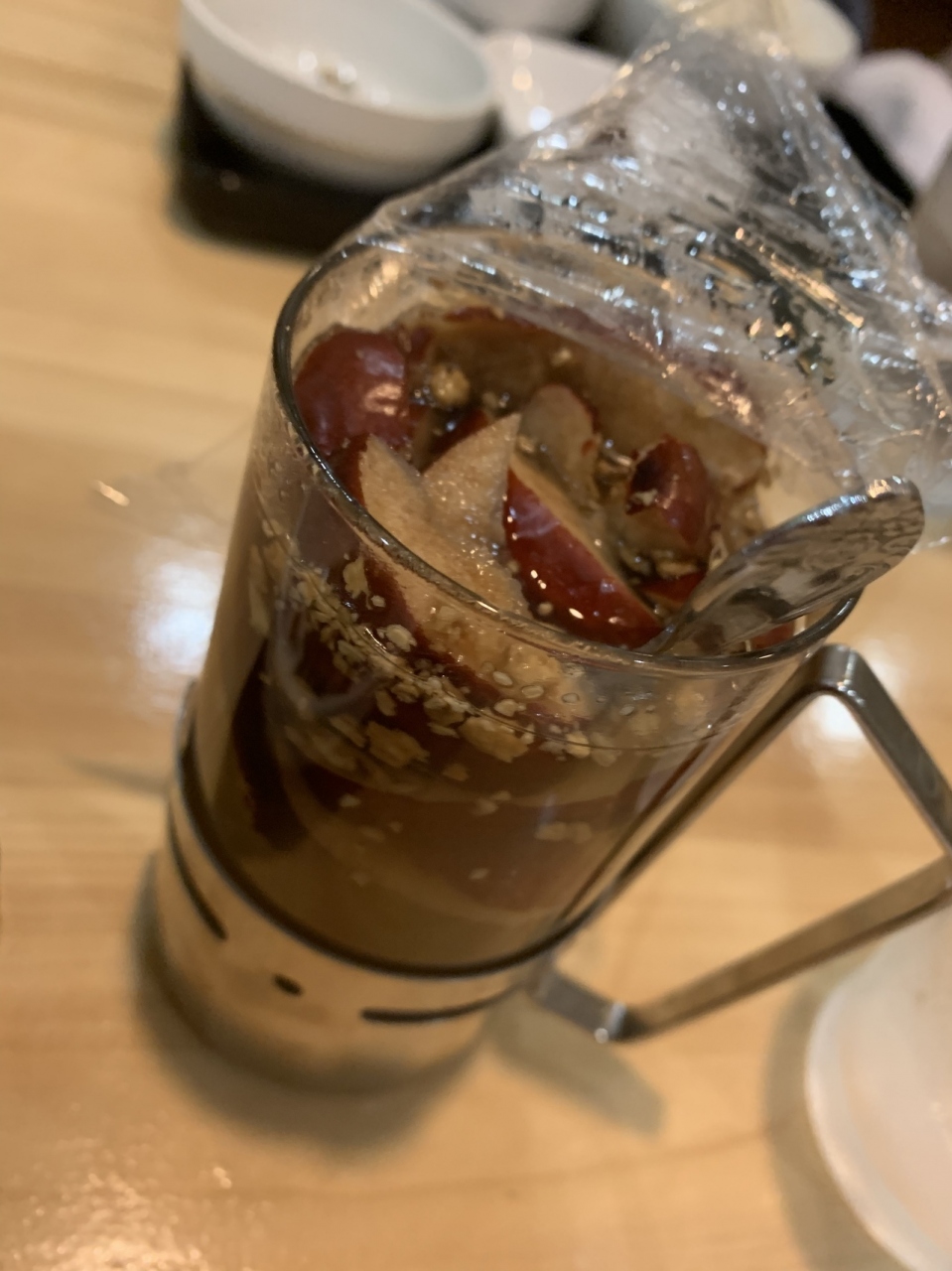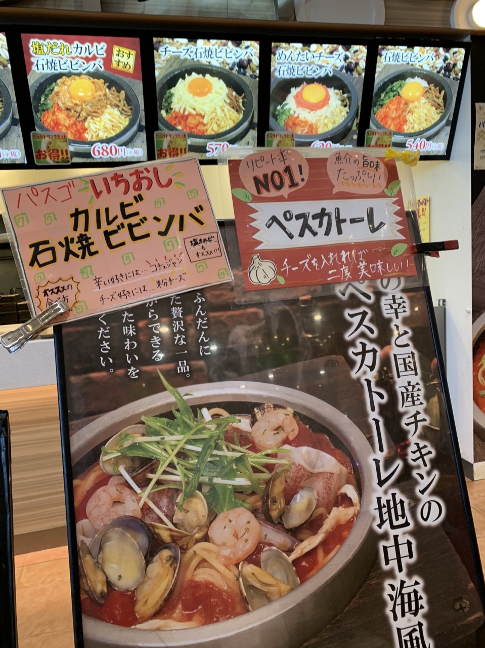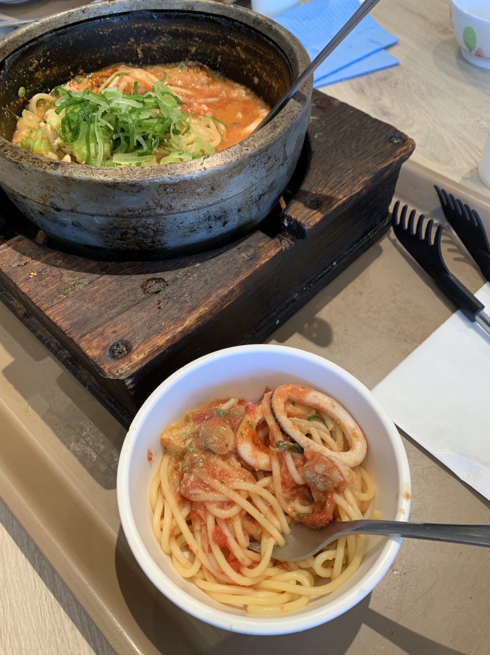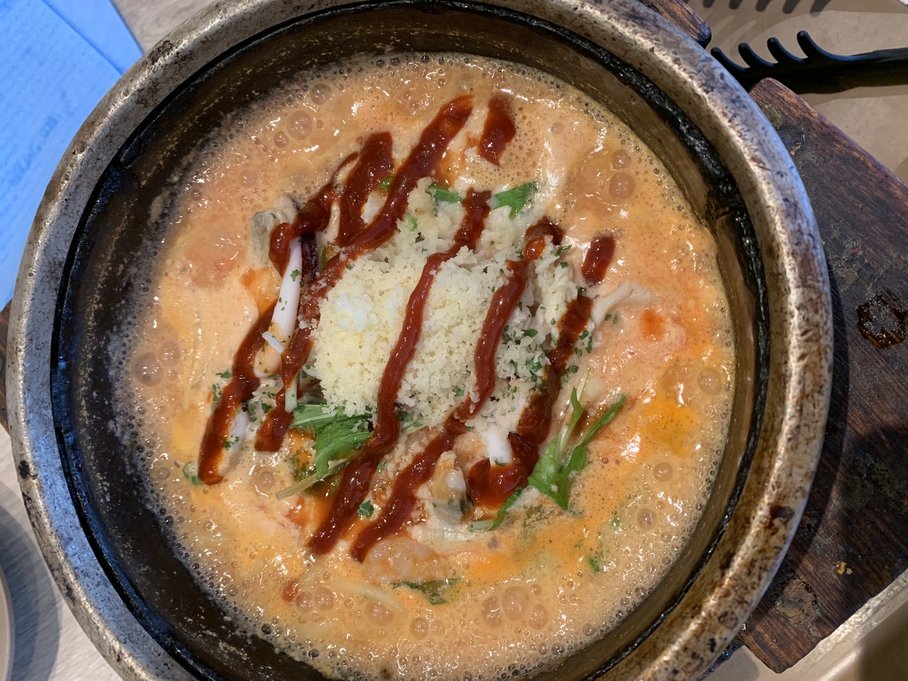 寒いだったので石焼が食べたくて訪れた。石焼ピビンバを頼むはずが、変わり種のパスタがありつい注文してしまった。スープパスタは熱々で最後まで楽しめた。コチジャンとタバスコと粉チーズを入れて思い通りの味だった。