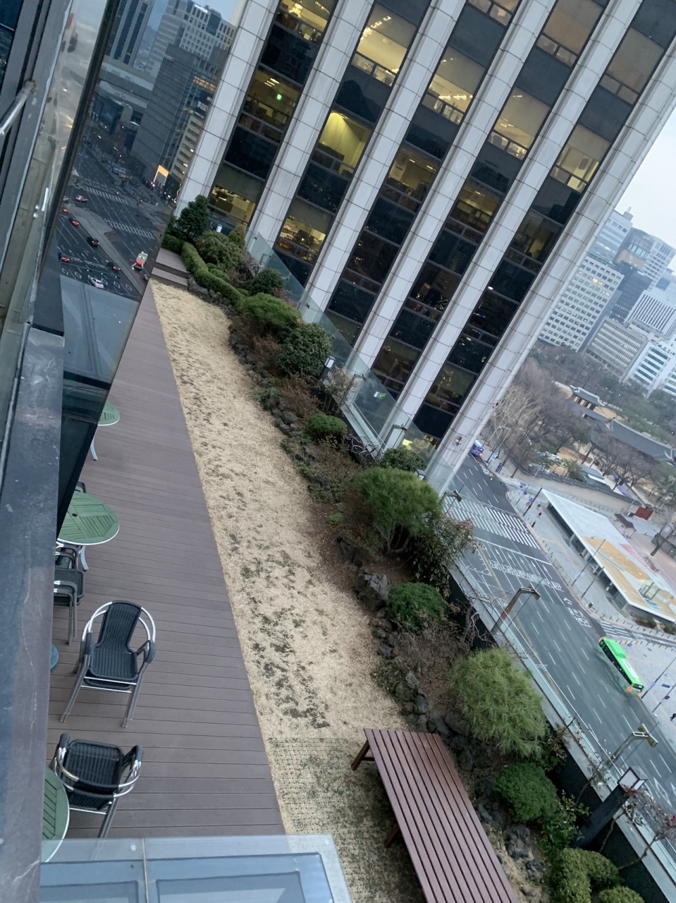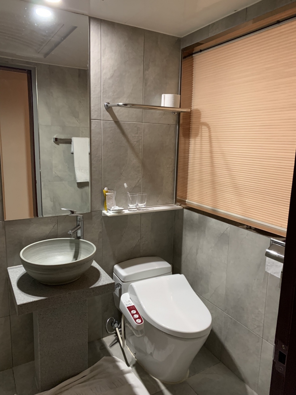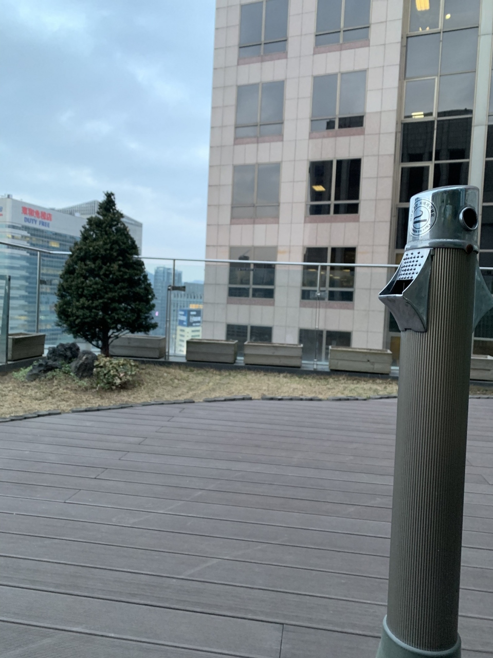 市庁の裏側見えないがお店も多いので聞くことができみんな親切に教えてくれた。バストイレはガラス張りだが広くて開放感がある。喫煙所はホテル内にある。屋上からは景色も良く町並みを眺められる。タオル、スリッパは備え付けられている。