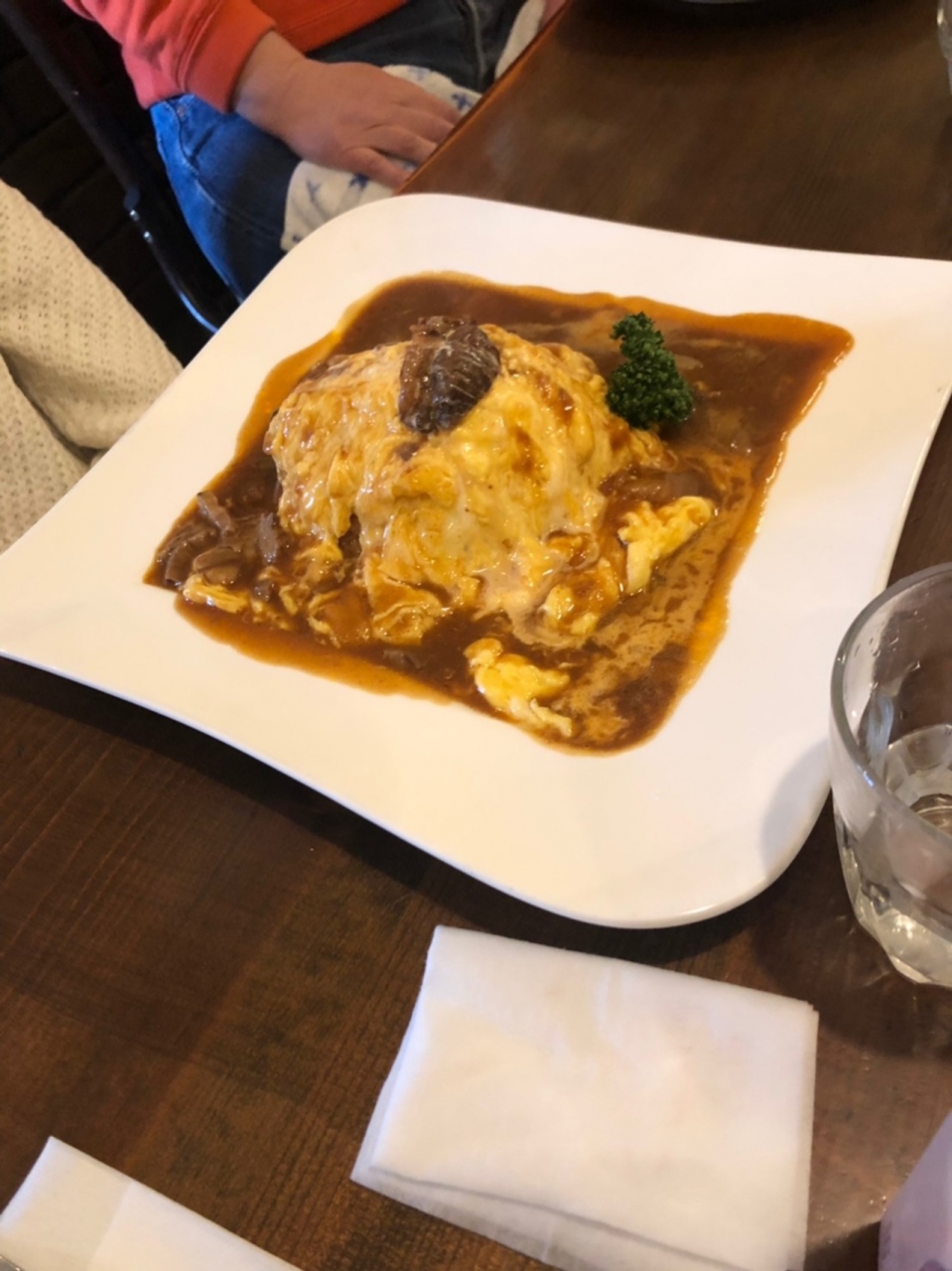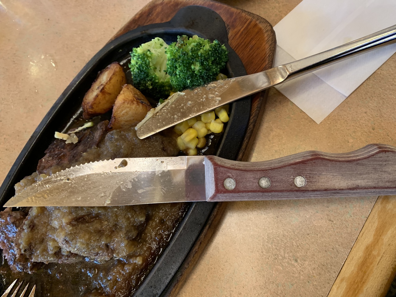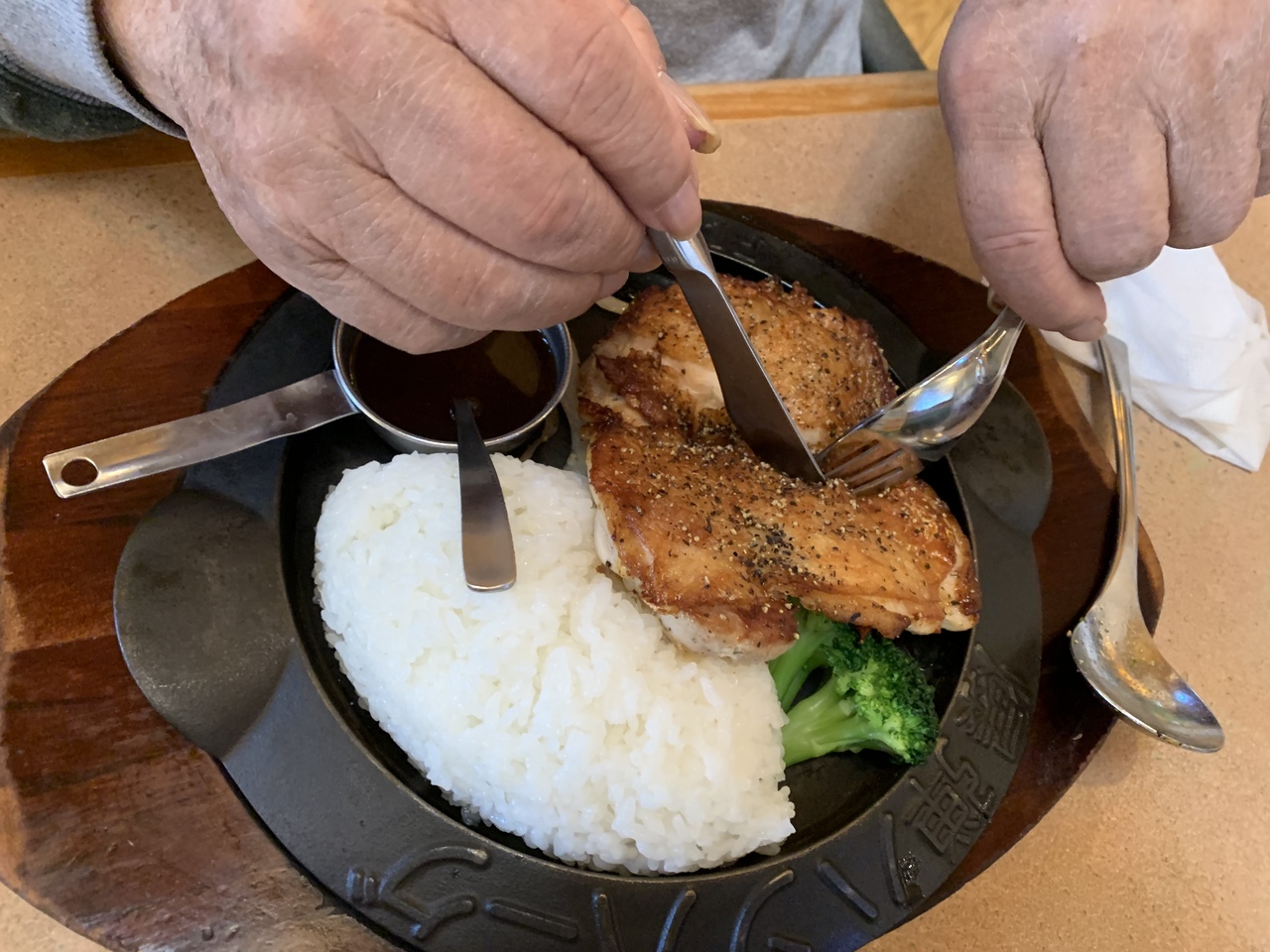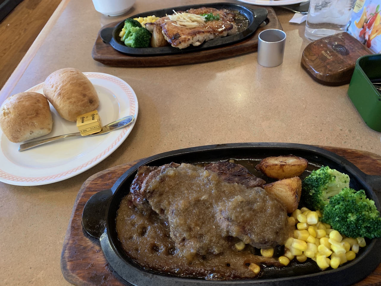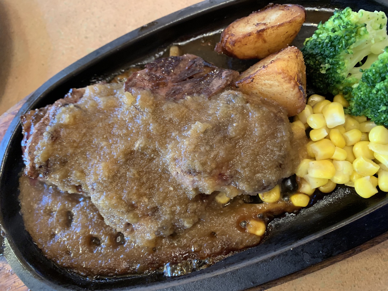 接客が丁寧ー車椅子を見ると椅子を外しておいてくれました。高齢の両親に切りやすいナイフも持ってきてくれました。ありがとうございます。気持ちよく食事ができました。爆弾ハンバーグが有名ですが本日はお肉をいただきました。ランチメニューはお得です。