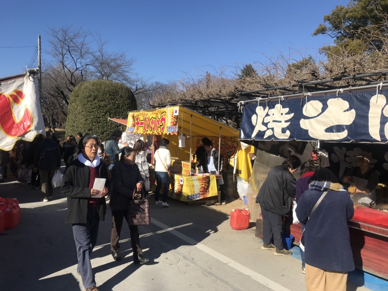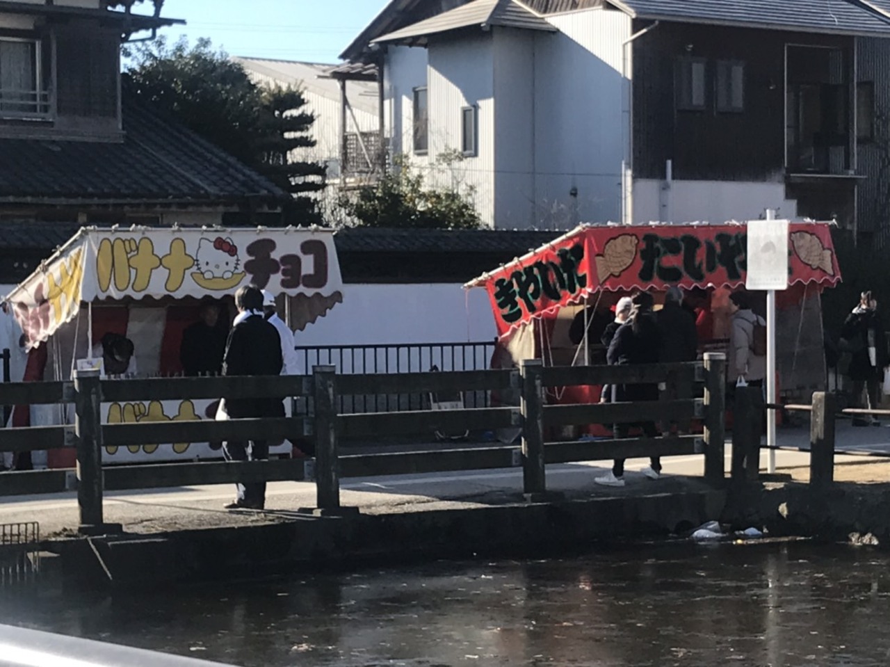 お堀が半分ある反町薬師様は1月4日にお祭りがあります。屋台もたくさん出て賑わいます。植木屋や果物屋、鍛冶屋も出ています。今年のヒット商品は 韓国のハットクですね。ゴミは持ち帰り住民に迷惑をかけないようにしましょう。