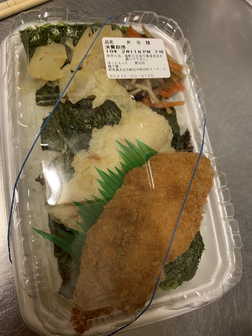 2号線沿いにあるほっともっとは食事時間帯は注文を受けてから作るために噛 混んでしまい待たされるが時間帯を避ければ空いてます。惣菜単品も買えて一人の食事では重宝します。今日は揚げ物好きな両親にのり弁を買いました。塩サバ焼きをつけ味噌汁を作るだけで夕食になるでしょう。