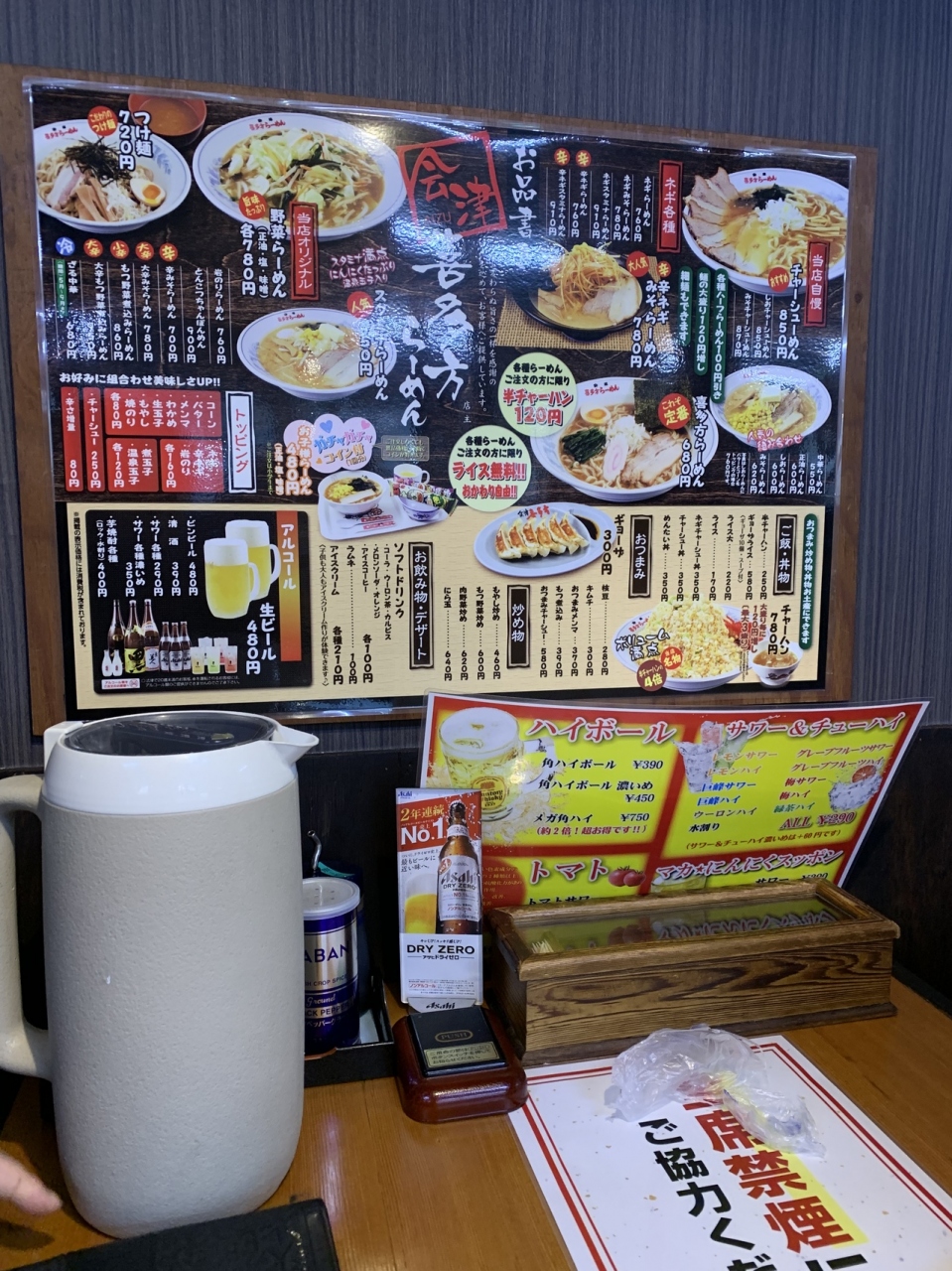 久しぶりに来店しました。食器もリニューアルしただろうか?麺はモチモチスープはこってりです。有名人もたくさん来店している様子。テーブルやカウンター、ボックスなどメンバーによって座れる場所があります。モニターと看板がとても目立ちます。