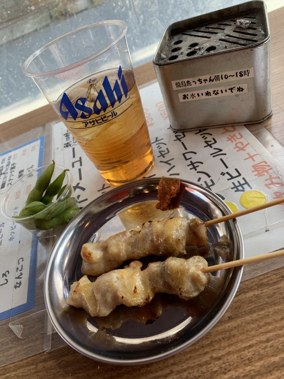 朝から飲める一杯飲み屋を探して入った。中では競馬を見ながら参加もでからようだ。五百円のおつまみセットを頼み往来の人を見ながらビニルの中で飲んだ。安くてそしてお酒が濃い。これぞ浅草だなあ。焼き鳥も美味しかった。