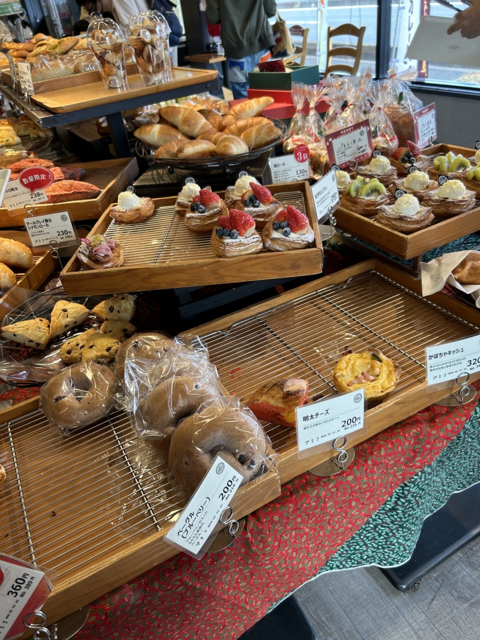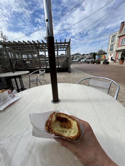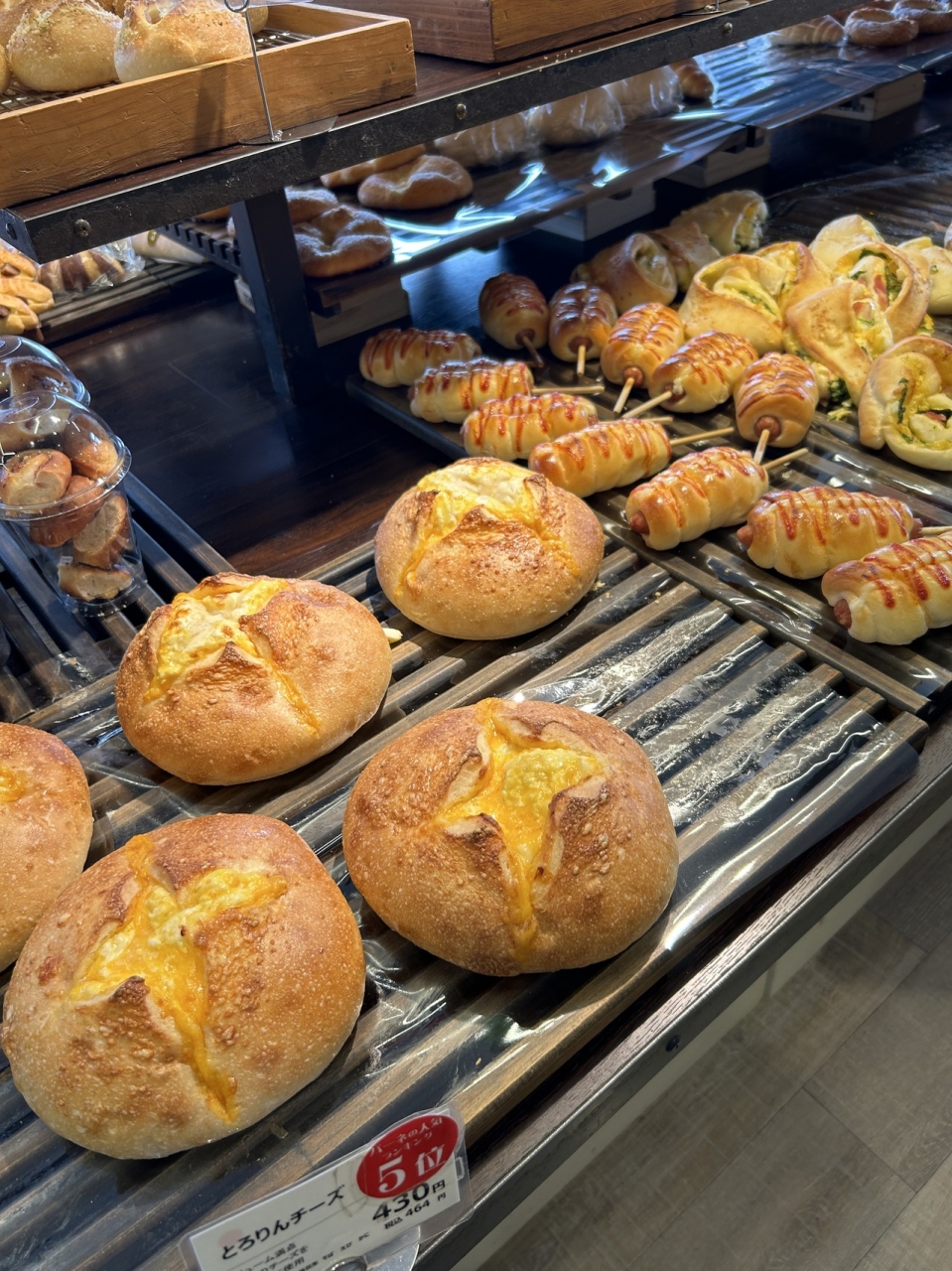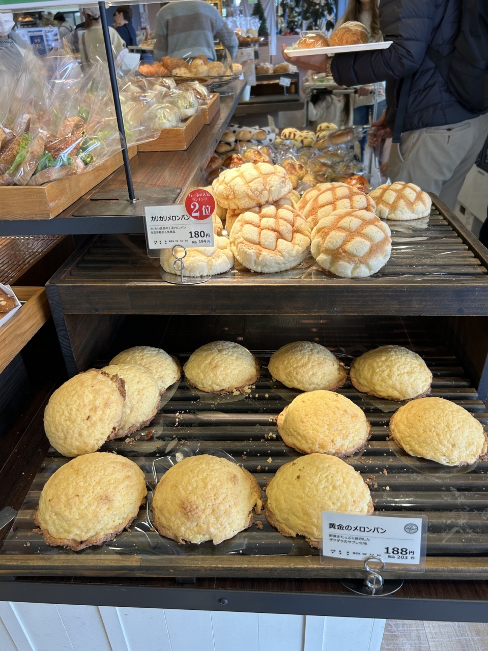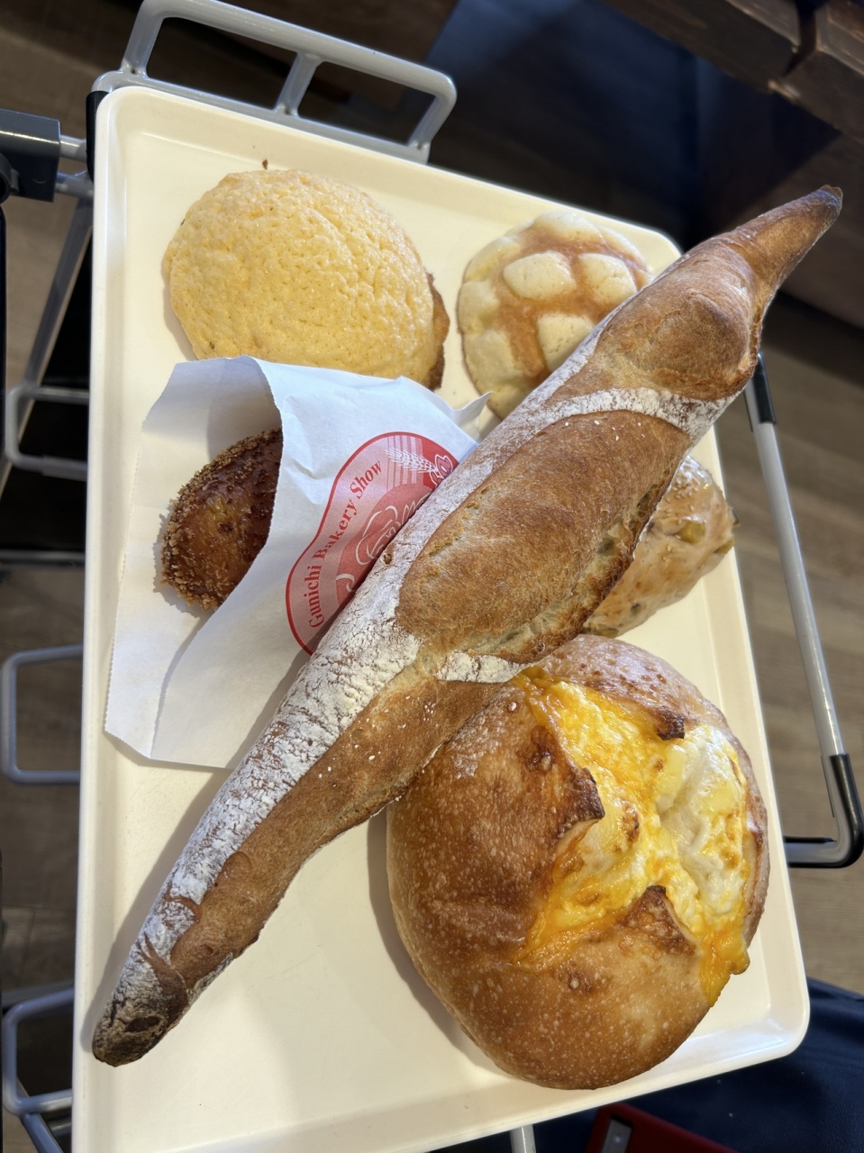 グンイチパンの前にあるパーネデリシアというパン屋さん。外壁はまるでヨーロッパのよう。釜のある入り口から中に入るとトレーを持つ人が溢れていた。ワゴンもあるので乗せて歩くと安心だ。パンは滑りやすいから。レトロバケット とろりんチーズ 玄米くるみさつま カリカリメロンパン 黄金メロンパン 辛口キーマカレーパンを購入。初めてなので売れ筋は買っておかないと。ワンドリンク注文でカフェで買ったパンを食べることもできる。外にもテーブルがあり空を見ながらパンくずを気にしなく食べるのも良い。